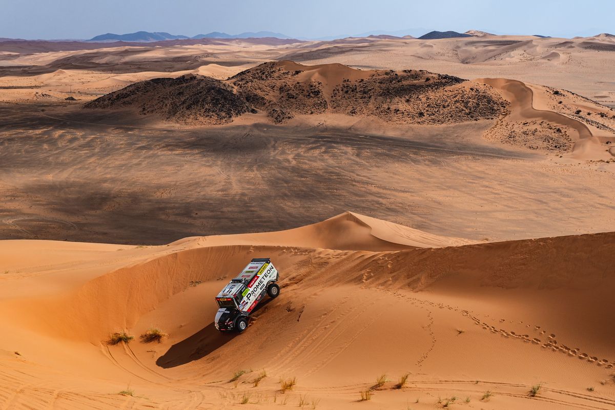 Skoro by se z pohledu od stolu chtělo říct, že pro ně byl Dakar snadnou záležitostí, to by však vůbec nevystihovalo pravdu, protože posádky dostaly naloženo hned od začátku. „Věděli jsme, že první půlka bude extrémně náročná – měli jsme tam Chrono 48 i maratonskou etapu. Největší novinkou byla jedenáctá etapa, kdy měly kamiony vlastní trasu, a jeli jsme tak jako první do dun a museli si 120 kilometrů v největších dunách Empty Quarter hledat vlastní trasu,“ popisuje záludnosti letošní trasy Dakaru navigátor František Tomášek.