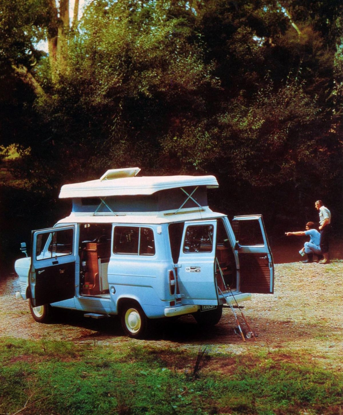 Ford Transit první generace nabízel široké množství verzí, pořídit se dal i jako obytňák.