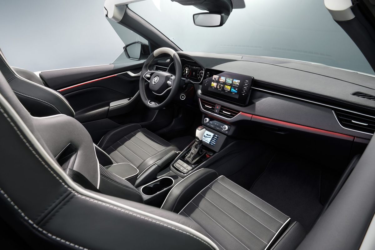Ze sériového vozu naopak pochází přední a zadní náprava, řízení, kompletní elektronika včetně kabeláže i asistenční systémy. Nedotčena zůstala také palubní deska včetně digitálního přístrojového štítu a infotainmentu. Pohon Slavie spider pak zajišťuje benzinový čtyřválec 1.5 TSI (110 kW) kombinovaný se sedmistupňovým DSG.