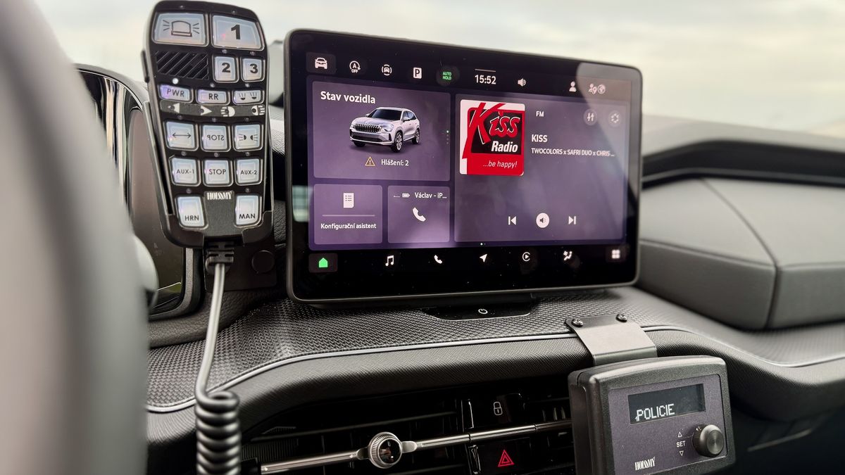 A teď ta největší zajímavost, namontovaná na základě zpětné vazby od policistů. Uvnitř přibylo tzv. imobilizační tlačítko. Auto totiž můžete nechat nastartované (třeba jako uzávěru pruhu), zamknout ho a klidně odejít a řešit služební povinnosti. Jenže, co když někoho napadne se do zamčeného běžícího vozu vloupat a odjet s ním? Tehdy se při pokusu o rozjetí auto vypne.