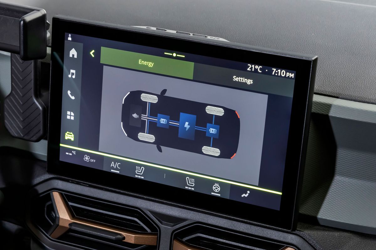 Jde totiž o hybrid. Ale jiný, než na jaký jste zatím u Dacie zvyklí. Přední kola totiž roztáčí přeplňovaný benzinový tříválec 1,2l s výkonem 140 koní (převzatý z větších hybridů Renault) spojený s dvouspojkovým automatem a vybavený úspornou 48V mild-hybridní technikou (umí zhasnout motor i za jízdy a vypomůže také při akceleraci).