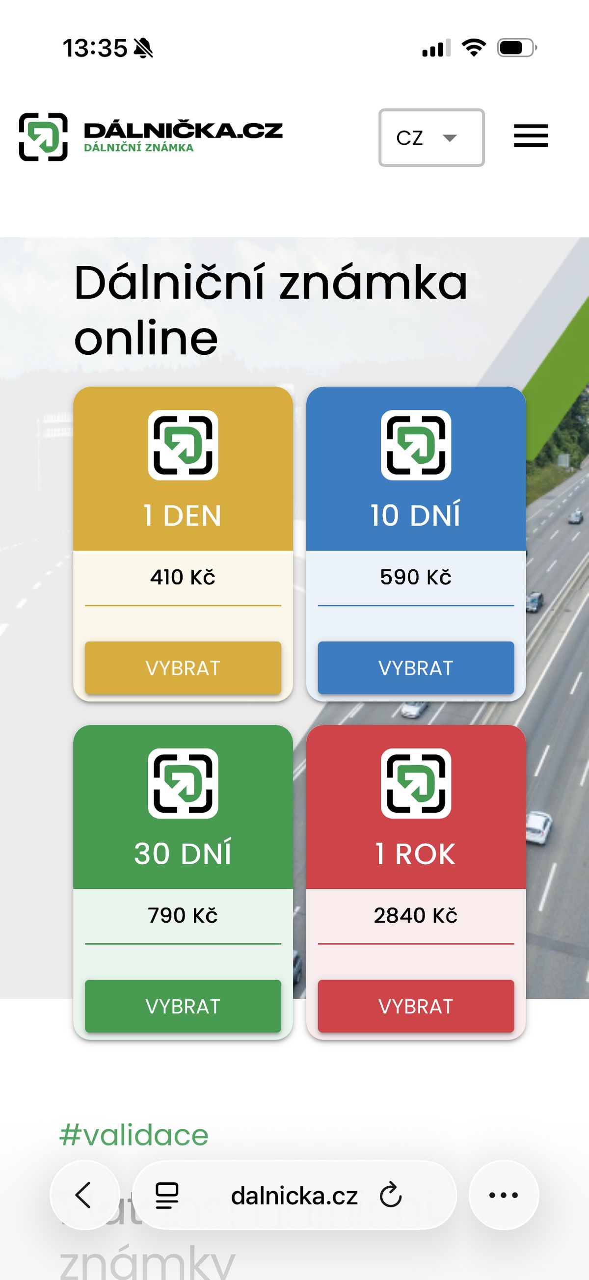 Takto vypadá oficiální web eDalnice.cz…