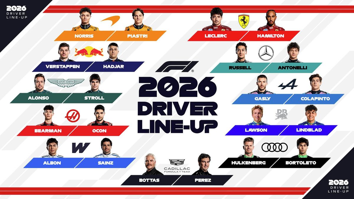 Přehled jezdců a týmů F1 pro sezónu 2026.