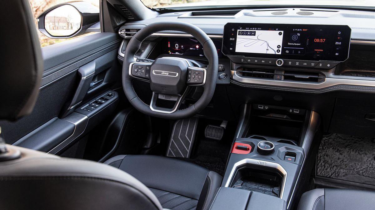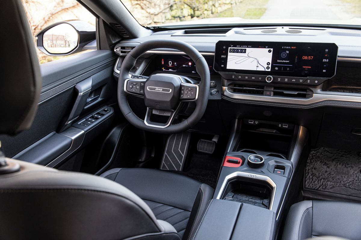 Jeep kromě jiného vyzdvihuje i přepracovanou kabinu. Na modernu se nezapomnělo, řidič spolupracuje s desetipalcovým digitálním přístrojovým štítem, head-up displejem a 16“ obrazovkou multimediálního systému, pro ovládání základních funkcí však v kabině pořád zůstávají tradiční fyzická tlačítka.