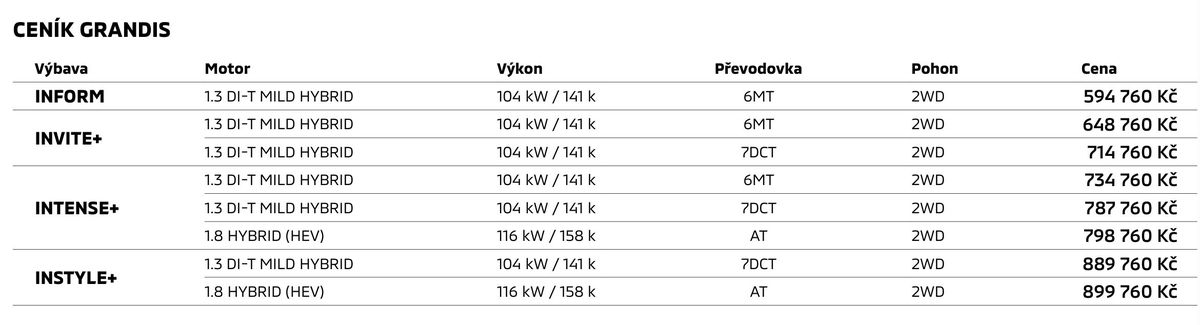 Pokud chcete jezdit ještě úsporněji, sáhněte po vylepšeném full-hybridu (diesel není a nebude) – ten má nově za základ čtyřválcovou osmnáctistovku (dříve byla šestnáctistovka) a vylepšenou multimodální automatickou převodovkou, takže je výkonnější (kombinovaný výkon činí 160 k), přitom efektivnější, tišší a hladší. A umí jezdit za nějakých 4,5 litru v průměru, jak jsme si již vyzkoušeli při prvních novinářských jízdách, kde se Grandis ukázal jako velmi příjemný společník.