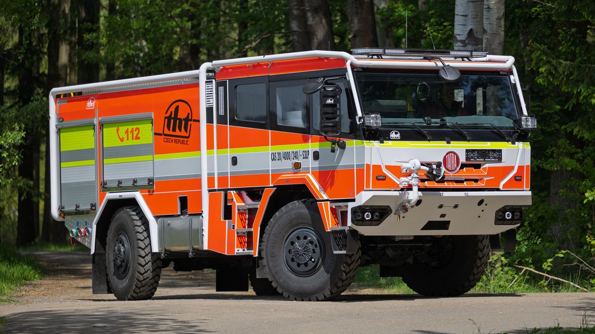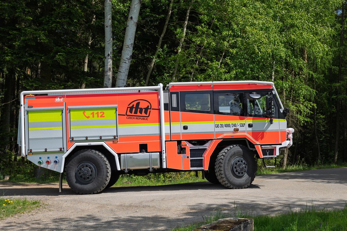 Tatrovka, jejíž hasičskou nástavbu připravili experti z THT Polička, je dlouhá 7 800 mm, široká 2 600 mm a vysoká skoro tři metry. Speciál se dokáže brodit až ve 120 centimetrech vody a nájezdové úhly vpředu i vzadu jsou 35 stupňů. Maximální rychlost je přitom stanovena na 110 km/h, takže kromě plížení v náročném terénu zvládne vůz také rychlý přesun na místo požáru.
