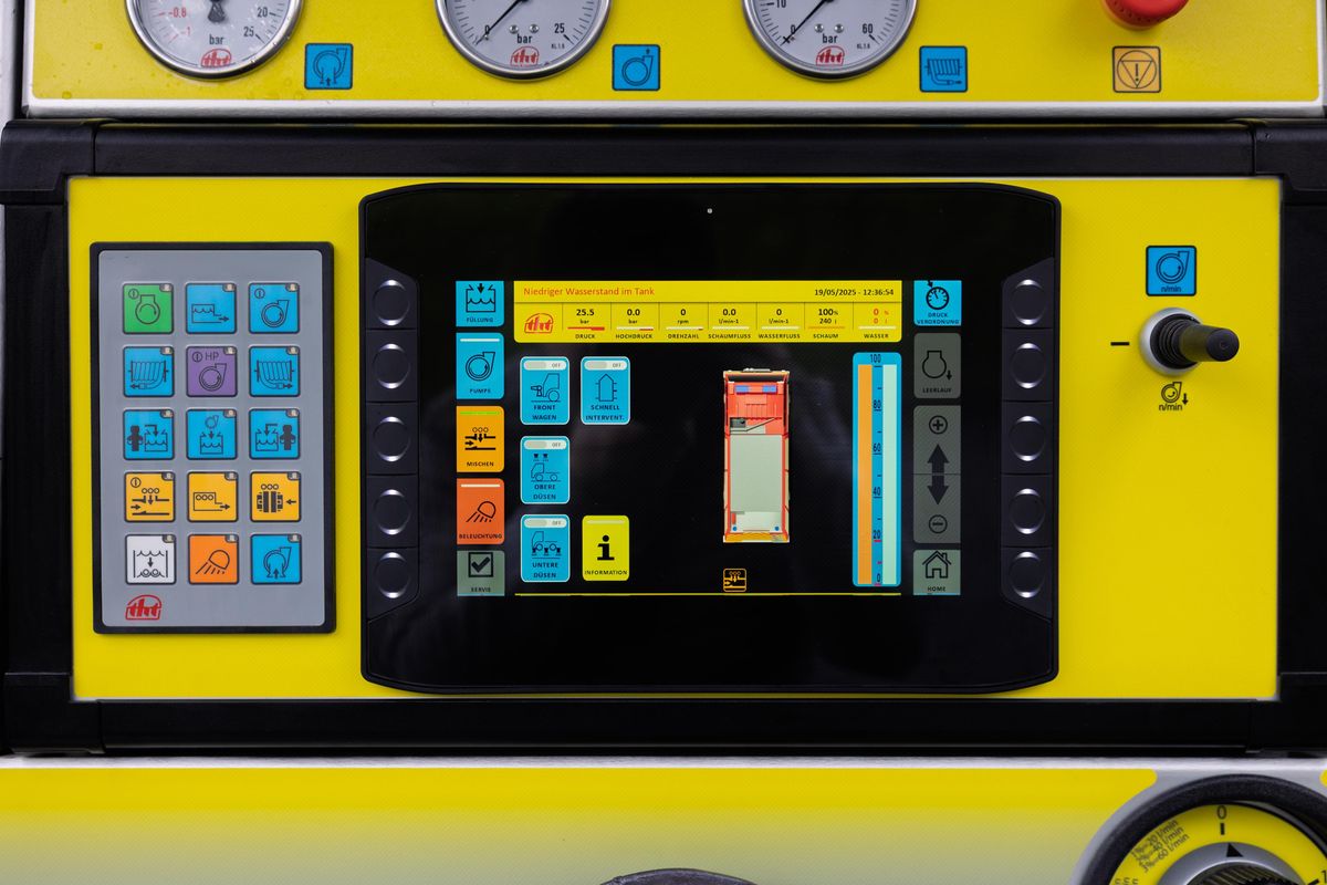 Auto do specifických podmínek dostává i specifickou obsluhu. Ovládací LCD displej je uložen v robustním pouzdře, má velmi dobrou čitelnost za všech světelných podmínek a uzavřený operační systém, aby se předešlo kybernetickým hrozbám. Obrazovka je odolná proti vibracím, otřesům a dokáže pracovat v teplotách od -30 do +70 stupňů Celsia.