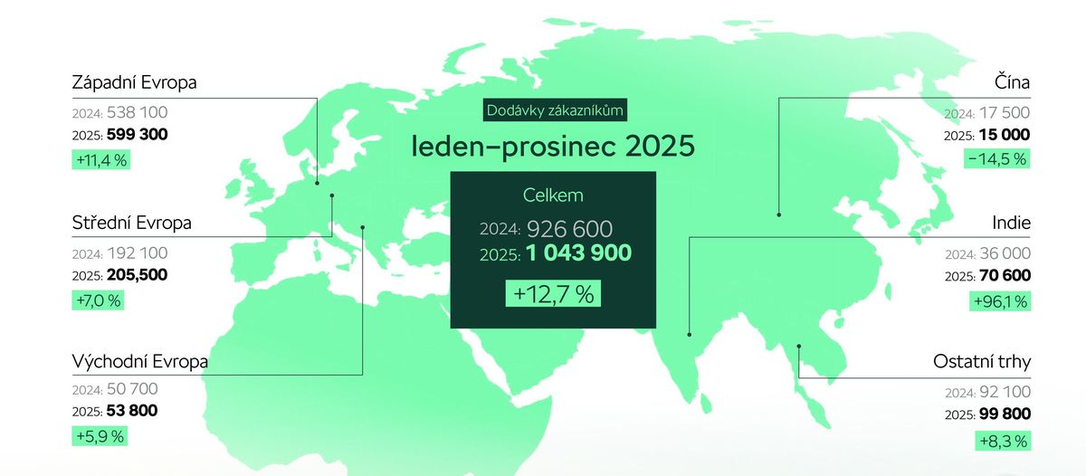 „V Evropě jsme dosáhli celkově skvělého úspěchu – zvláště s plně elektrickými modely Enyaq a Elroq, které s dodávkami téměř 175 000 vozů pomohly značce Škoda vyšplhat na čtvrtou příčku mezi výrobci elektromobilů,“ uvedl člen představenstva pro prodej a marketing Škody Auto Martin Jahn.
