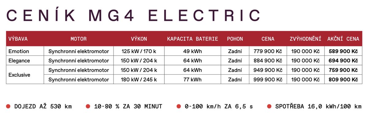 MG4 vstoupilo na náš trh s cenovkou 779 900 Kč a od svého počátku patřilo mezi nejdostupnější elektromobily u nás, vždyť přímá konkurence toho času startovala někde kolem jednoho milionu korun.