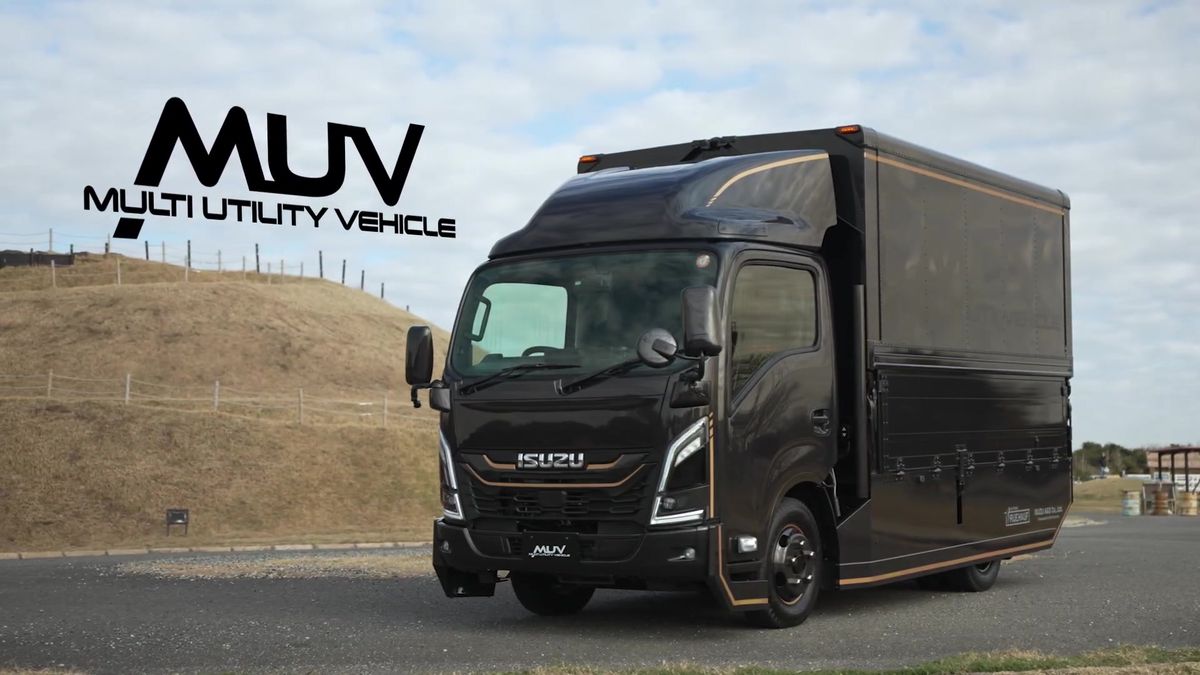 Ale co takhle černý náklaďák od Isuzu, jehož zlaté akcenty zdobí také aerodynamicky laděnou nástavbu ukrývající něco opravdu luxusního a útulného?