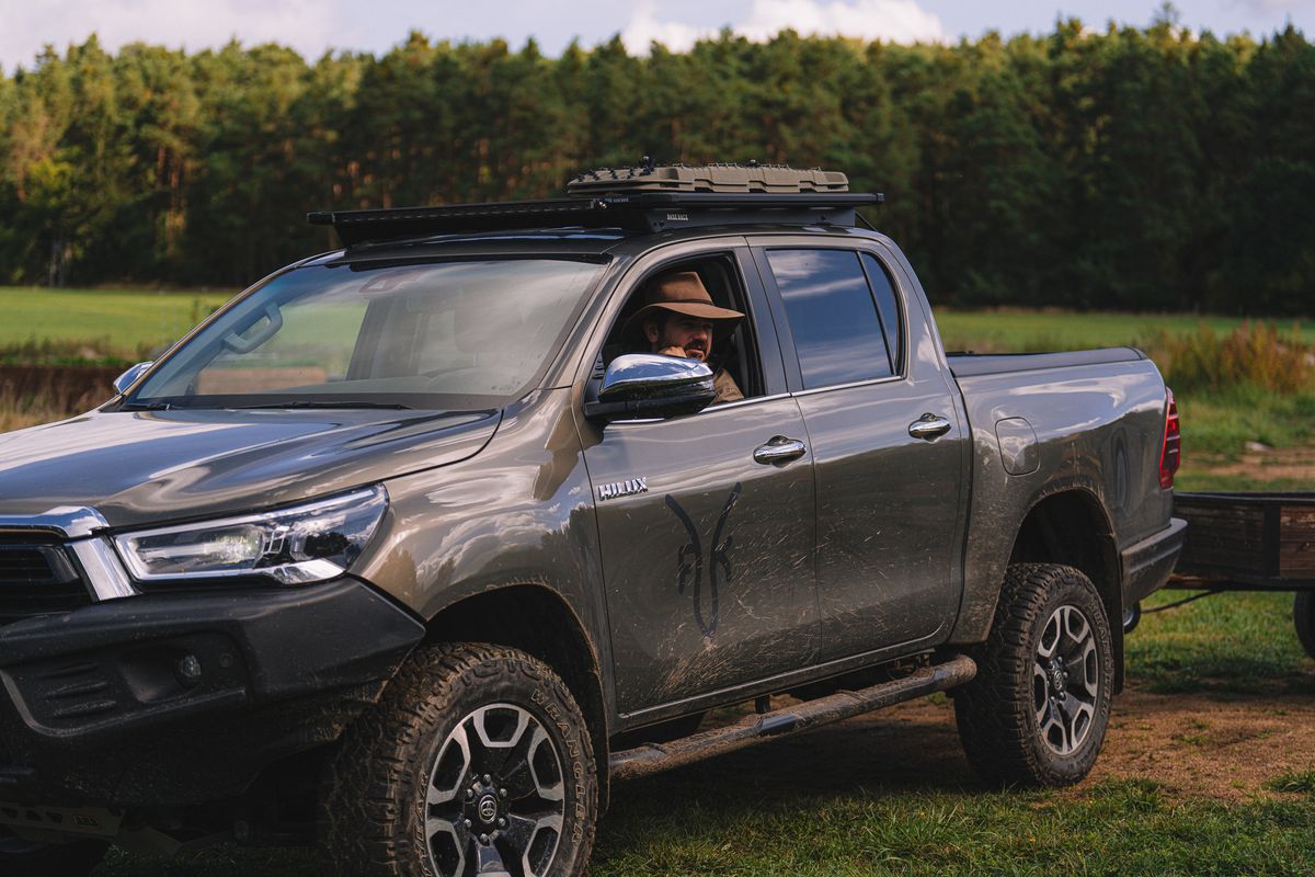 Parťákem během náročného farmaření se mu stane pick-up Toyota Hilux, který je do takovýchto náročných podmínek jako stvořený. Právě tento model si přál sám Vojta Kotek. „Přišel za námi s tím, že si nedovede představit lepší auto pro svůj záměr, než je právě Hilux. A pro nás je to vždy lepší cesta k partnerství než naopak, protože vztah ke značce nemusíme budovat od začátku. Hilux je ideální vůz k práci i do terénu,“ vysvětluje Michal Velička, šéf marketingu Toyota ČR.