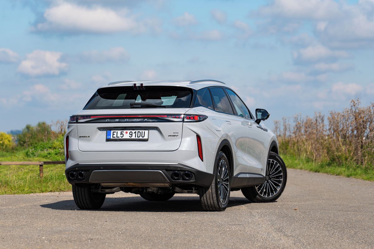 Co je důležité, jde o plug-in hybrid (v Omodě mu říkají SHS) s velkou nádrží (70 l) i baterkou (34,46 kWh). V praxi to znamená, že jen na elektřinu zvládne plně dobitá „devítka“ až 145 kilometrů. A pokud přičteme i benzin, dostaneme se na dojezd až 1 100 kilometrů. Akční rádius vám tedy klidně vystačí daleko za hranice naší země.