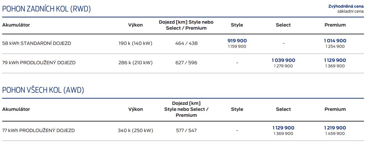 Ceny Fordu Capri modelového roku 2026.75 nejsou tajemstvím. Posílený základ 58 kWh stojí od 919 900 Kč, nejprodávanější verze s dlouhým dojezdem začíná od 1 039 900 Kč, čtyřkolka startuje od 1 129 900 Kč.