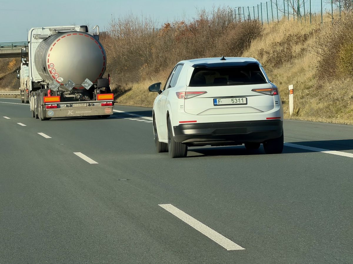 V doprovodu jiného vozu se tajemné bílé SUV podařilo vyfotografovat nedaleko sjezdu na Kolín. Z fotky přídě toho moc nevyčteme, nicméně nevypadá to, že by záhadné auto bylo jen nataženým Enyaqem. Předek bude nejspíš jiný, více využívající designový jazyk Modern Solid.