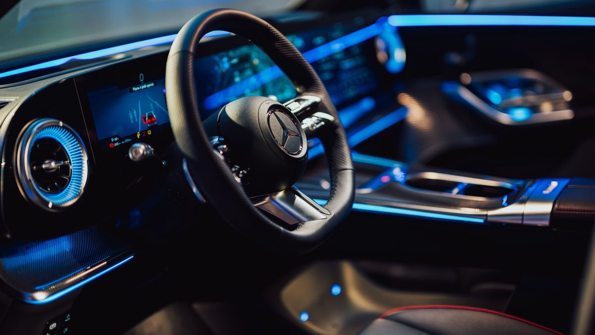 Zvenčí se automobil pyšní zakulacenými tvary a především podsvícenou čelní maskou s animacemi. Zadní svítilny pak zobrazují trojcípé hvězdy Mercedesu, které najdete i uvnitř. Pokud vás totiž neohromí obří displej posazený do palubky, standardně rozdělený na tři segmenty, pak panoramatická střecha s efektem mléčného skla nebo hvězdnou oblohou určitě ano.