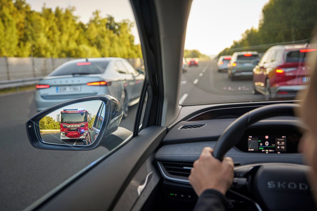 Aktualizace aplikace Traffication dostupné pro vozy Škoda od roku 2020 přináší novinku ve formě upozornění na blížící se vozidlo záchranných složek.