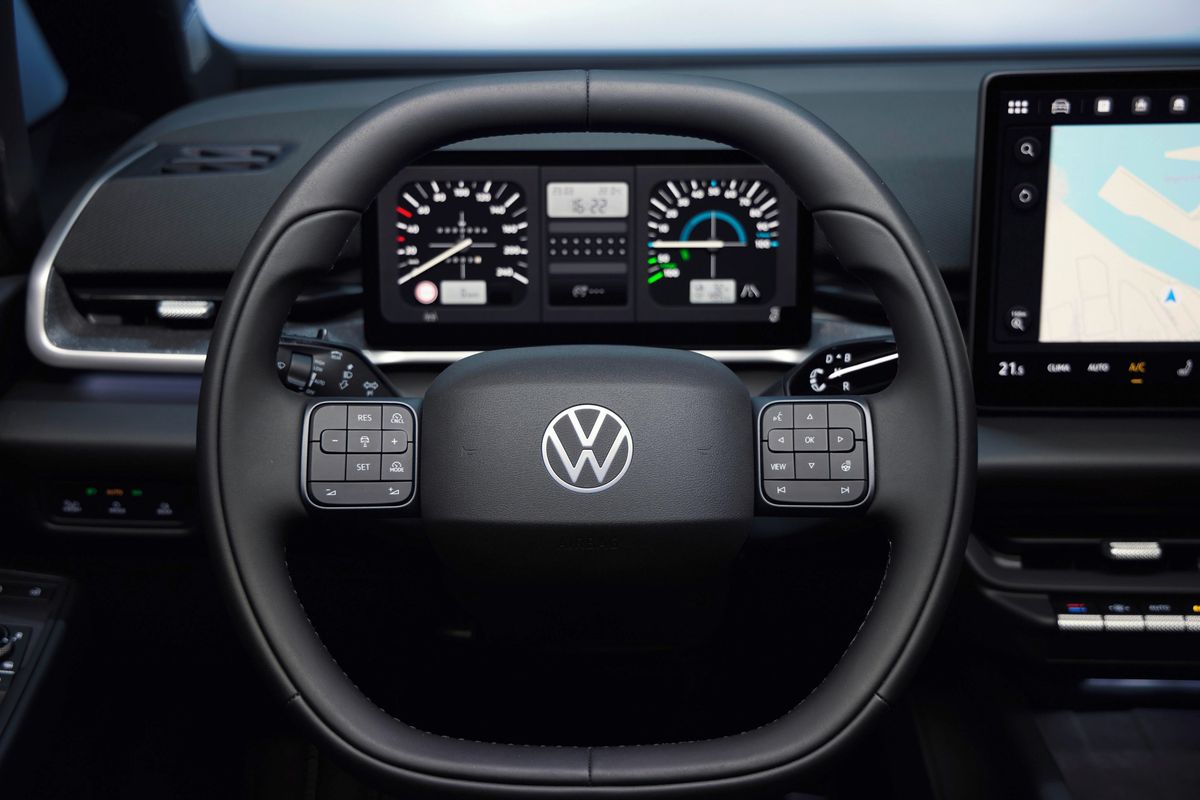 Řidič nyní kouká na nový a daleko větší (10,25 palce) přístrojový štít s možností retro designu představeného u ID. Polo nebo jiných zobrazení typu navigace a podobně.