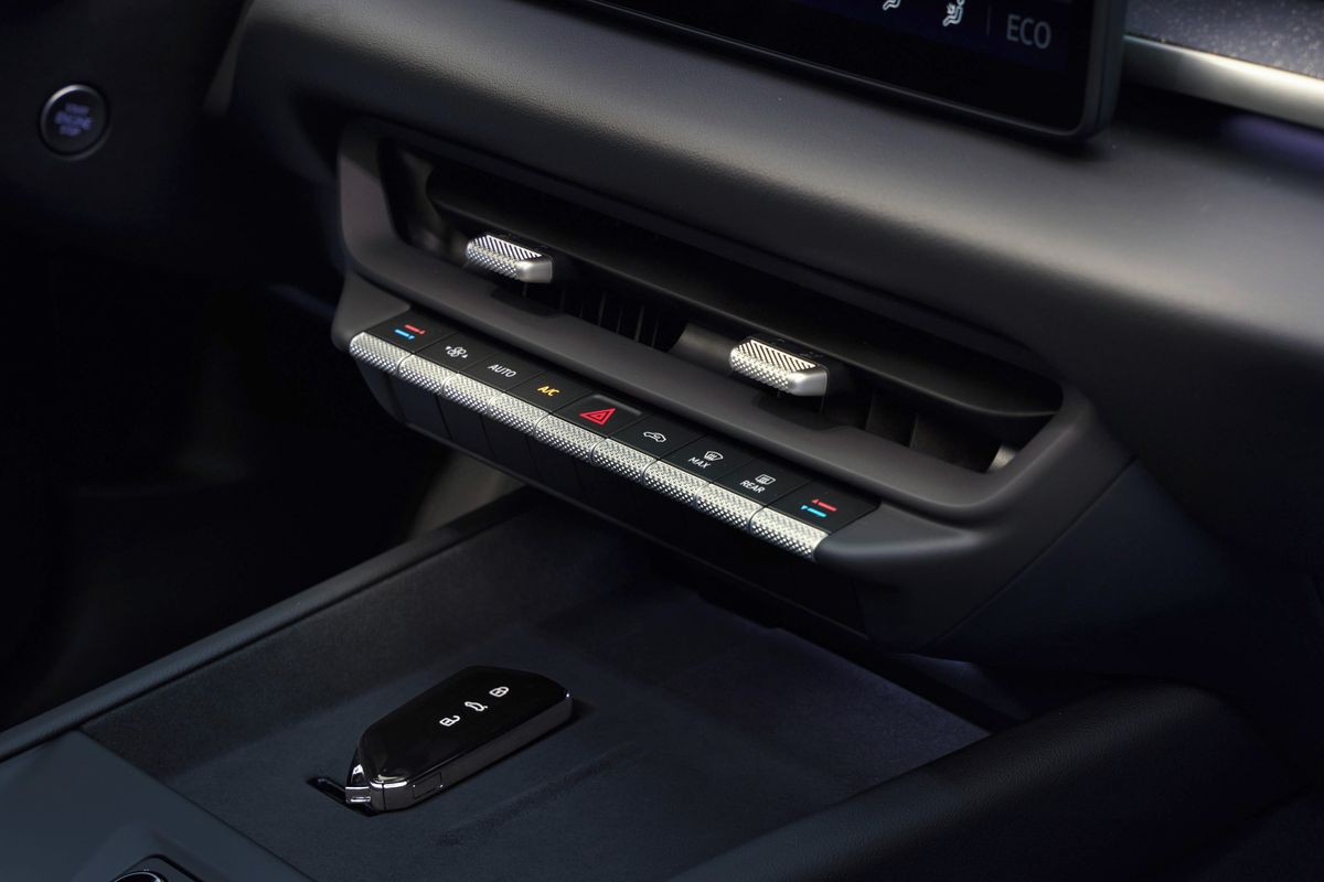 Praktické prvky typu ovládání teploty, ventilátoru, recirkulace vzduchu, odmrazování čelního skla a vyhřívání zadního okna jsou integrovány do lišty s tlačítky pod hlavním displejem.