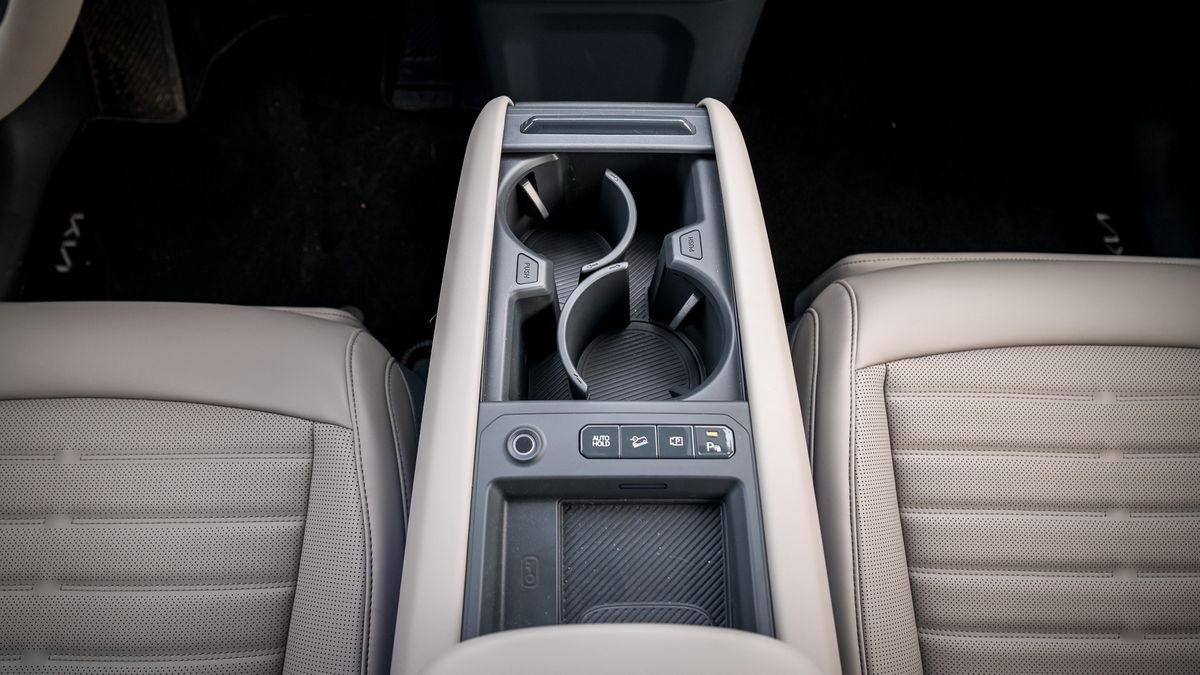 Ve druhé řadě Kia EV9 ženským pohledem zaujala kvůli prostoru pro nohy, ovšem pár bodů ztratila kvůli místu nad hlavou. „U takhle velkého vozu bych si představovala pár centimetrů nad hlavou navíc, ale zase chápu, že vzadu budou jezdit převážně děti a pro ty je tady velekrálovsky prostorno,“ hodnotí vzdušnost vozu Štěpánková.