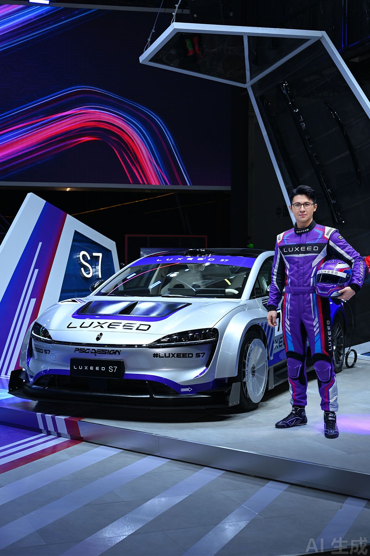 Neméně zajímavě to pojala značka Luxeed (spadá pod Chery). Na jejím stánku jste mohli vstoupit před obrazovku a kameru, ta pořídila snímek a vy jste si vybrali scénář, ve kterém vás má umělá inteligence zhmotnit a „počínštit“. Ze mě se stal tovární závodník…