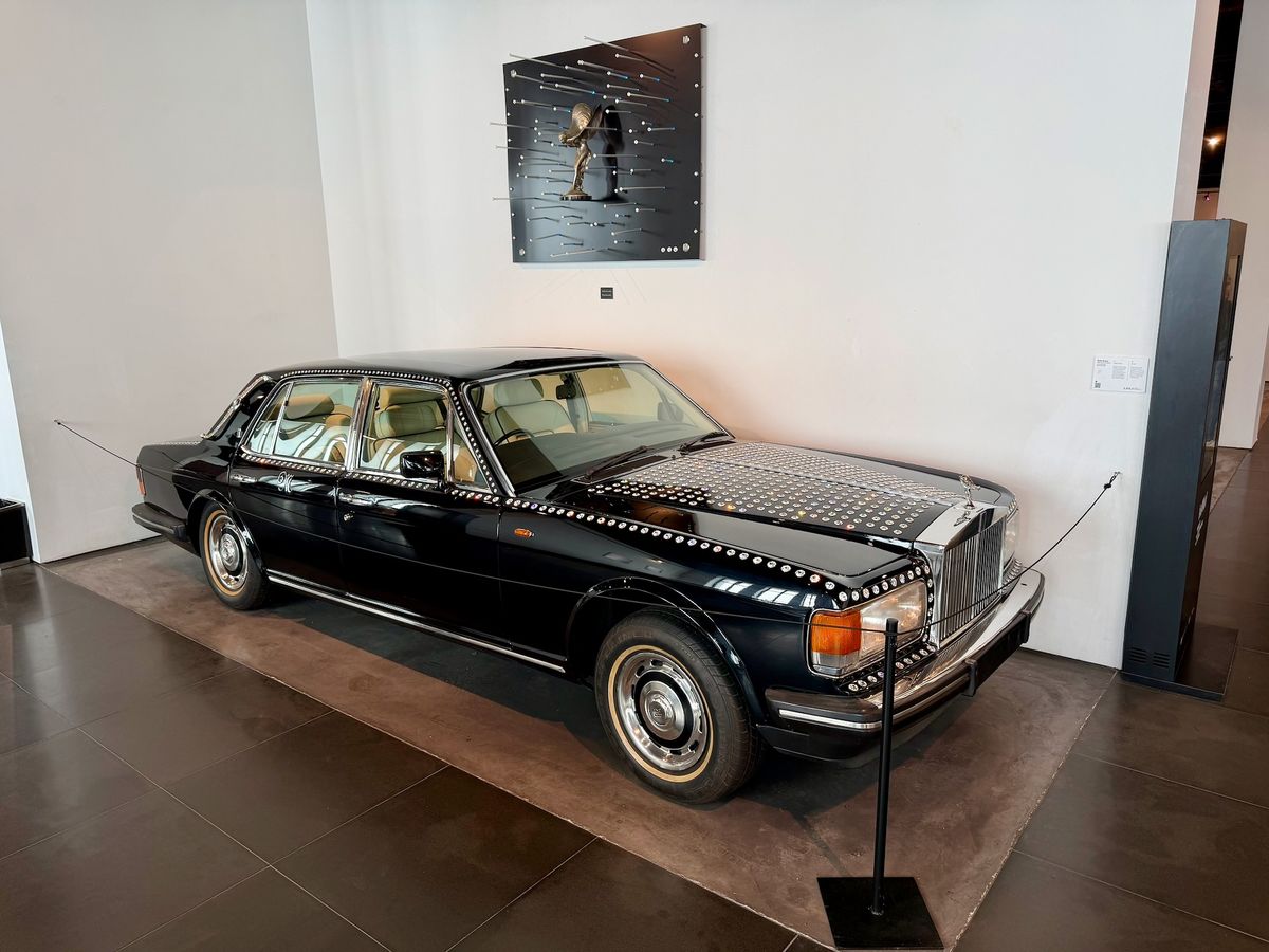 A když jsme u těch celebrit, tak v sekci britských klasik stojí Rolls-Royce pomalovaný ve stejném stylu, jaký na svém autě měl John Lennon z The Beatles.