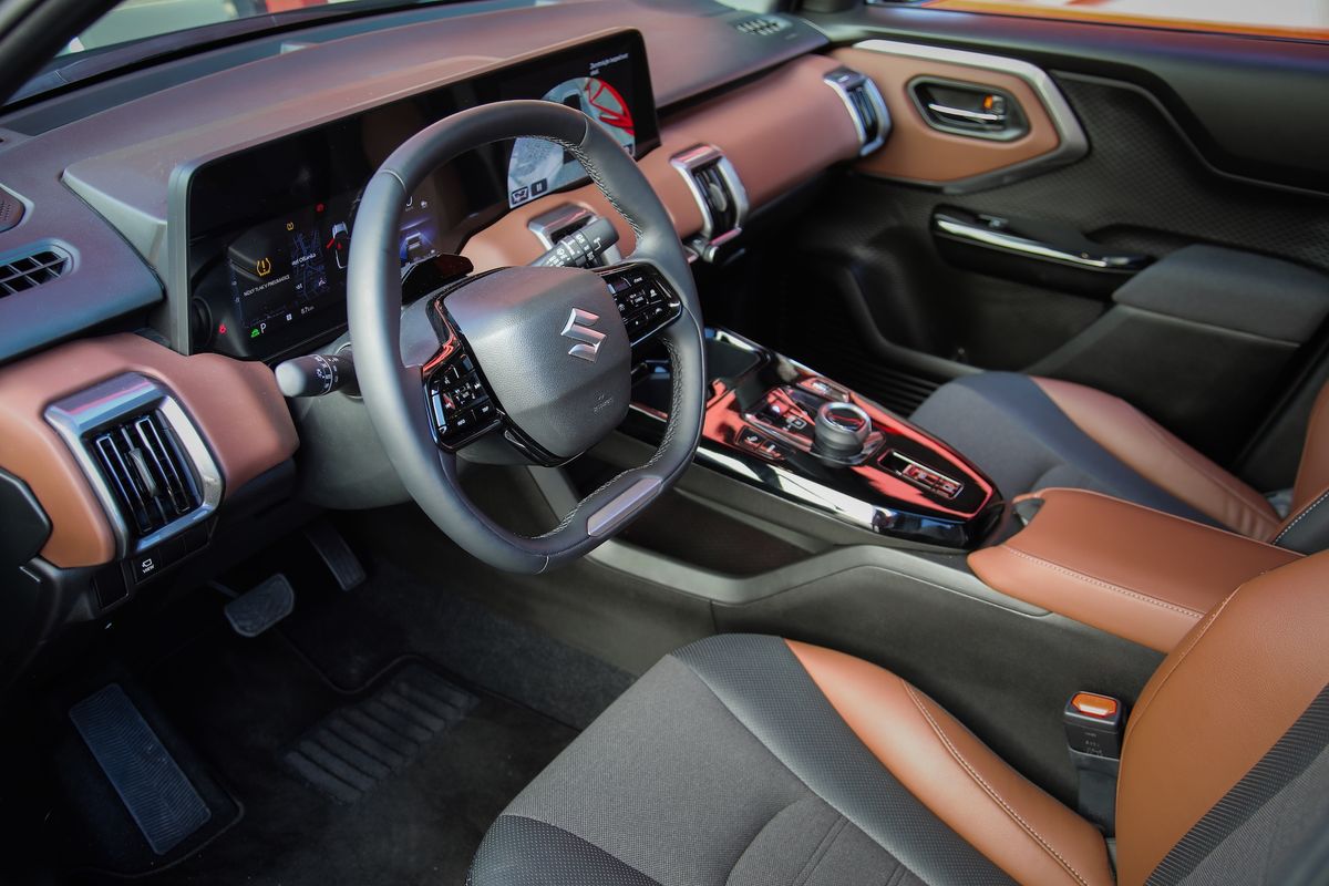 Pokud tedy čtyřkolku skutečně využijete, Suzuki vám připravilo poctivou alternativu. Jestli se však hodláte držet asfaltu, velmi bych zvážil e Vitaru s pohonem pouze přední nápravy. Ta se nabízí s větší i menší baterkou (49 a 61 kWh), od toho se pak odvíjí také výkon předního elektromotoru – 49kWh varianta nabídne 106 kW, verze s akumulátorem 61 kWh disponuje 128 kW. Suzuki sice udává i pro e Vitaru 4×2 prakticky stejnou spotřebu v kombinaci kolem 15 kWh jako u čtyřkolky, já bych se však zase jednou vsadil, že praxe bude daleko příznivější. Respektive, rozdíl ve prospěch e Vitary 4×2 daleko vyšší, než kolik predikují tabulky. Kvůli použití akumulátoru lithium-železo-fosfát se musíte smířit s nejvyšším nabíjecím výkonem 90 kW, tato technologie však zase pomůže snížit cenu elektromobilu. Ostatně, stejný postup zvolil u svých nejlevnějších elektrických modelů i Volkswagen.
