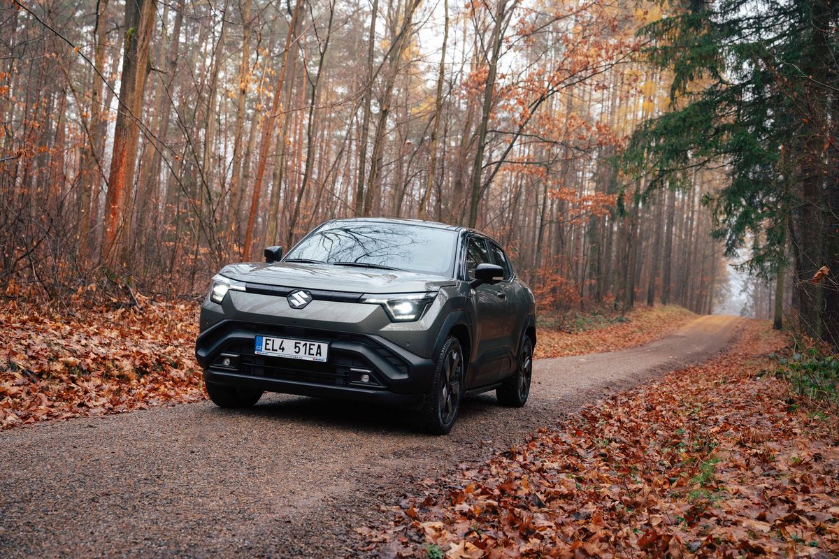 S dynamikou jsme neměli sebemenší problém, naše verze s pohonem všech kol a tedy dvěma synchronními elektromotory s permanentním magnetem je na přední nápravě vybavena jednotkou s výkonem 128 kW, vzadu pak najdeme motor s výkonem 48 kW (systémový výkon činí 135 kW). Jako s každým elektromobilem jsem svižně zrychloval okamžitě, od nuly, díky výše zmíněnému výkonu však měla e Vitara dost sil i za městem. Na špinavých podzimních silnicích se hlavně při rozjezdech velmi hodila čtyřkolka, kdy dává suzuki při odpichu přednost zadní nápravě. Tedy té s vyšší trakcí. Pak už elektronika rozděluje točivý moment podle potřeby, a zvládá to i v rámci jedné nápravy, což se zase hodí v zatáčkách.