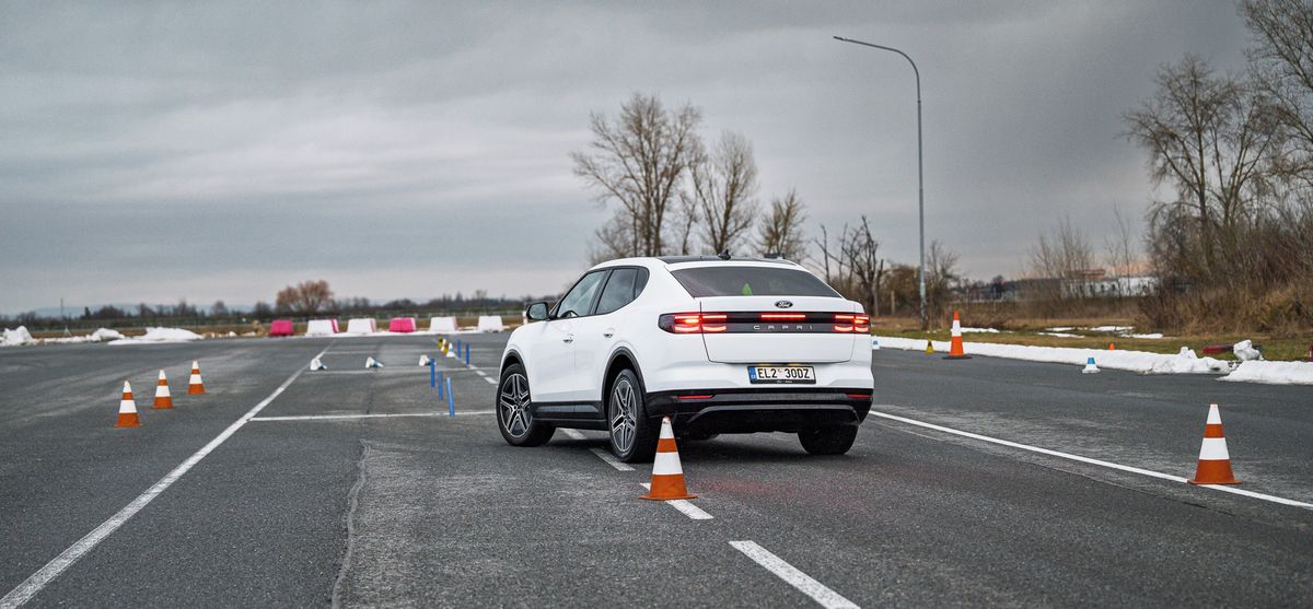 Během vyhýbáku elektromobily mohou těžit ze své hmotnosti, právě díky nižšímu těžišti. To nám ukázal i Ford Capri, přestože kvůli SUV karoserii přecházel při manévru do mírného náklonu, tak kombinace těžiště, obutí a správná technika vedly ke zvládnutí „losáku“. Za nás příjemné překvapení, jak auto na zimních fungovalo i v takové krizi.