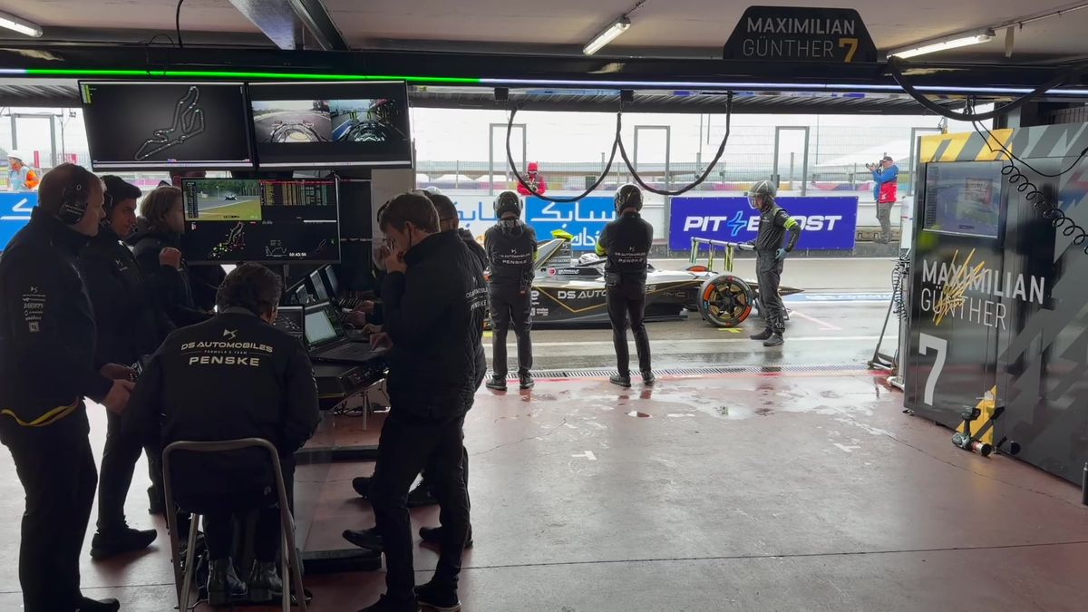 Vybaveni sluchátky pro poslech komentáře, nám při pohledu na týmové monitory DS Penske bylo jasné, že mokro po ranním dešti bude pro dvacítku jezdců z deseti týmů výzva. A taky že ano.
