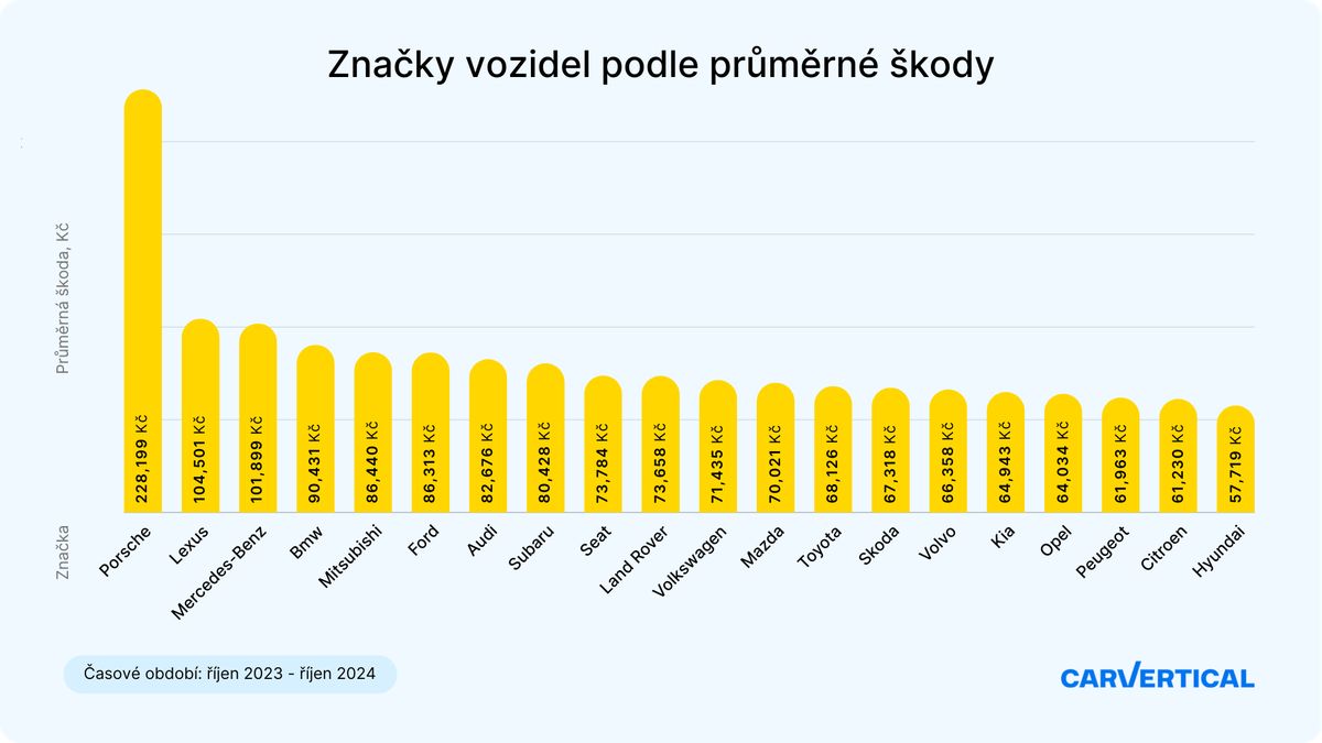 Na druhém místě je japonský Lexus s průměrem 104 501 Kč a na třetím rovněž stuttgartský Mercedes-Benz s průměrnou sumou 101 899 Kč. Navíc podle průzkumu CarVertical mělo každé porsche v průměru 1,8 záznamu o poškození, lexus rovněž 1,8 záznamu a mercedes-benz 1,6 záznamu.