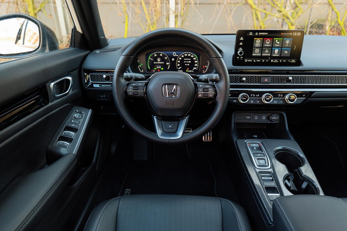 Ani s volbou vhodného motoru si těžkou hlavu nedělejte, v nabídce je totiž jediný. Civic pořídíte výhradně jako hybrid, jehož srdcem je atmosférický dvoulitr pracující v Atkinsonově cyklu dopovaný elektromotorem. Výsledkem je systémový výkon 184 koní, stovka za 7,8 až 8,1 sekundy (v závislosti na výbavě) a omezovač rychlosti na maximálce 180 km/h.