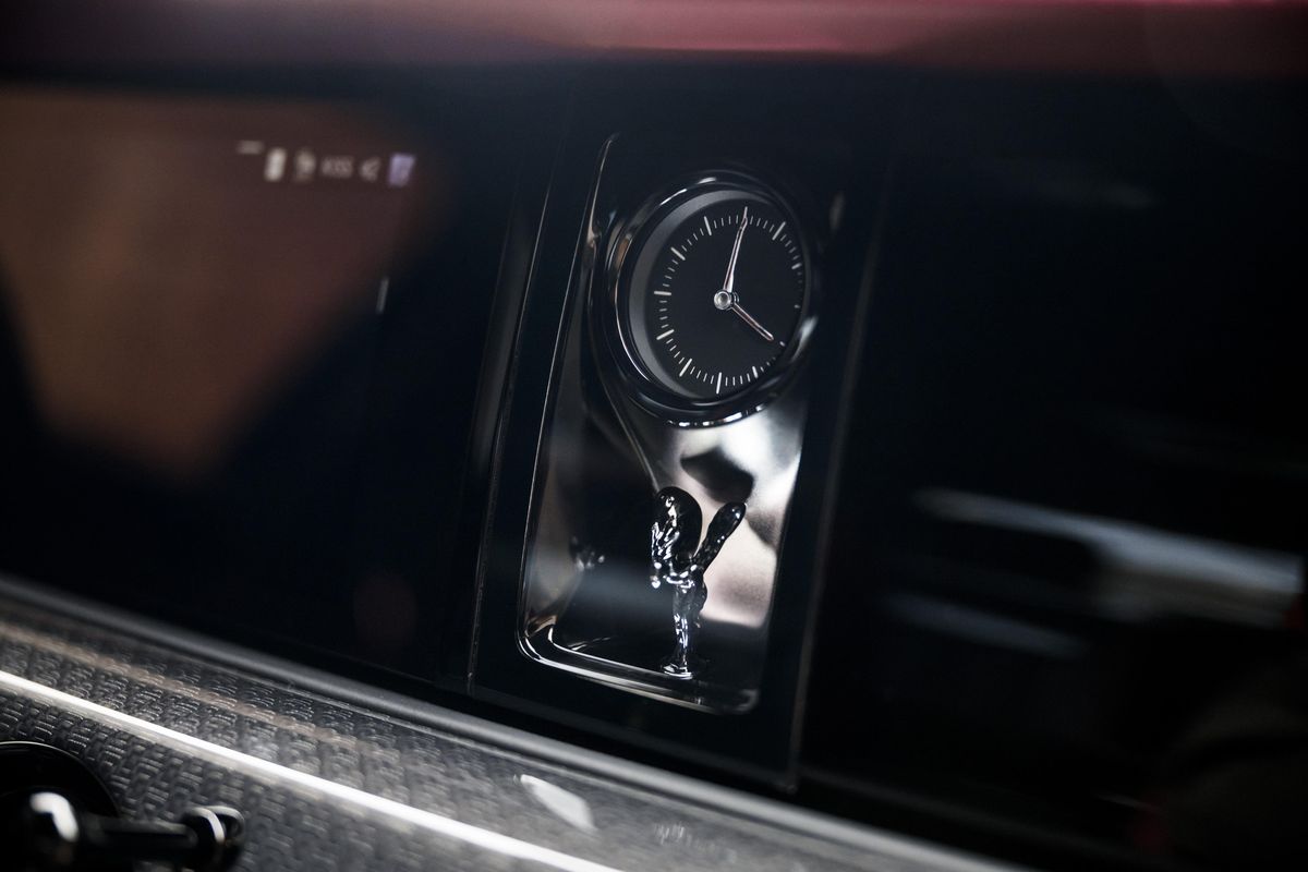 A omlazovalo se i uvnitř, přepracovaný je na začátku zmíněný displej uprostřed, pod analogové hodiny se nastěhovala soška Spirit of Ecstasy. Moc hezký detail.