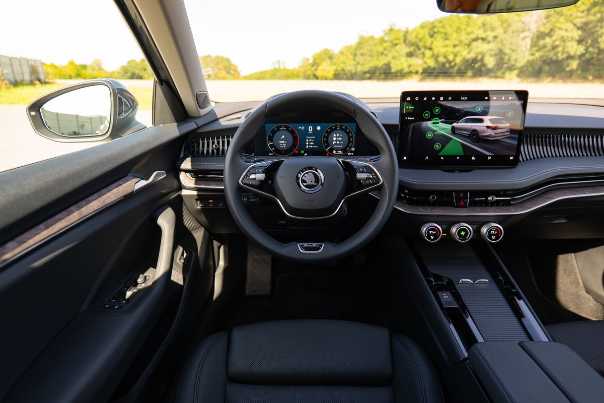 Velký kus práce škodováci v poslední době odvedli na infotainmentu, který v superbu běhá na 13palcové obrazovce. Systém je svižný, přehledný a logicky uspořádaný. Šikovné jsou například ikonky v horní části domovské obrazovky, které fungují jako zkratky k vypnutí/zapnutí/nastavení nejčastěji používaných funkcí. Nyní si tak rychle deaktivujete například stop-start nebo se bleskově dostanete do nabídky s asistenty.