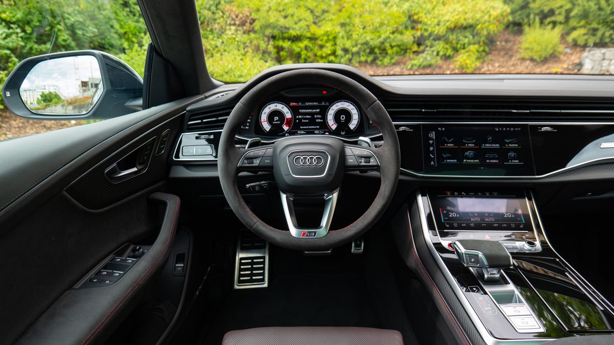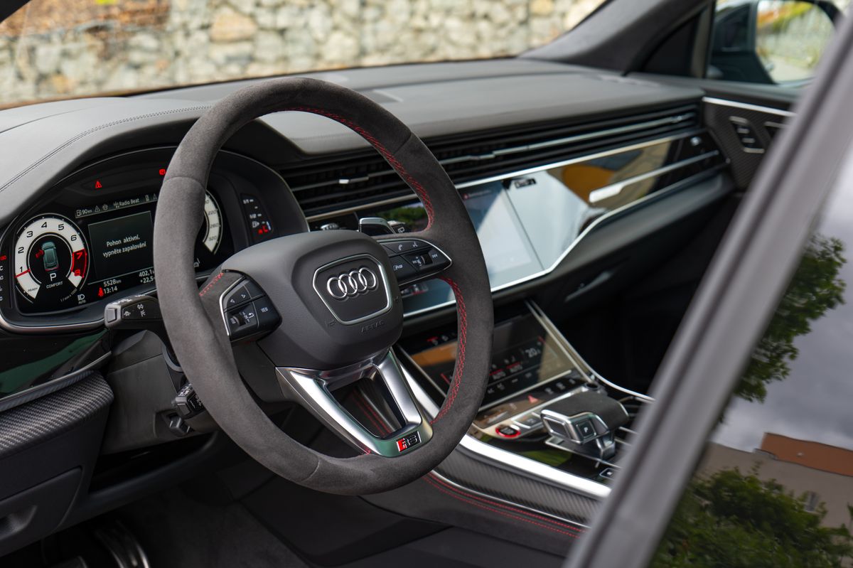 Jenže vy si kupujete SUV proto, aby se do něj dobře nasedalo a měli jste lepší přehled za volantem – a v tom RS Q8 rozhodně nezklame. Taky má vzduchový podvozek, který umí být mimořádně pohodlný i s 23palcovými koly na nízkoprofilových papučích, takže si můžete zapnout odvětrávání sedačky, spustit masáž zad, na hi-endovém audiu Bang & Olufsen s 23 reproduktory o celkovém výkonu 1 920 W a s 3D efektem si pustíte oblíbenou hudbu a klidně můžete překonávat kontinenty.