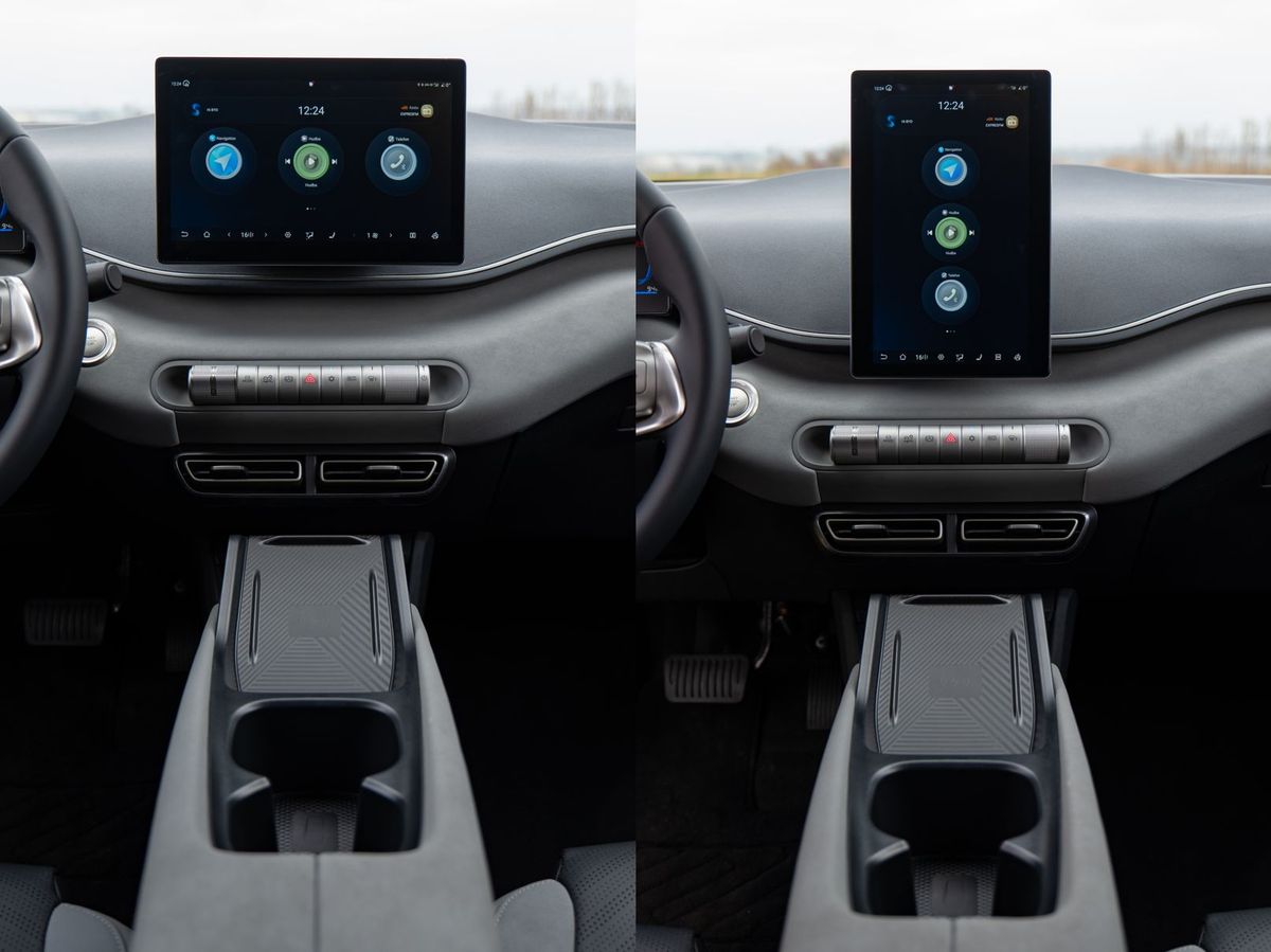 Chcete displej infotainmentu v širokoúhlém, nebo portrétním režimu? Obvykle vám to nadiktuje výrobce, ale tady si můžete vybrat – stačí zmáčknout tlačítko a displej se otočí. Tenhle trik neumí ani Rolls-Royce!