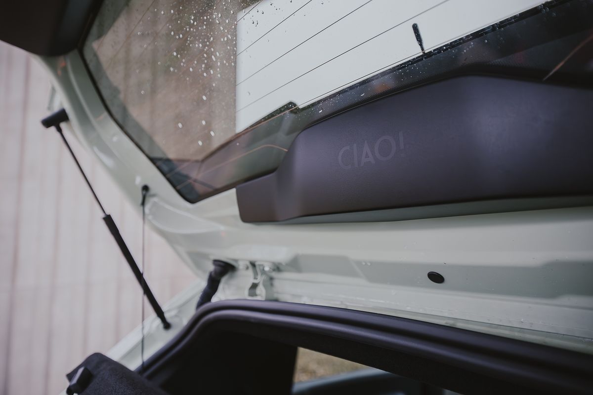 Na druhou stranu má na svoji konstrukci slušný kufr o objemu 412 litrů, přičemž na pátých dveřích zevnitř ještě nápis „Ciao!“ (ahoj). No není to hezké, když se s vámi auto pokaždé pozdraví či rozloučí?