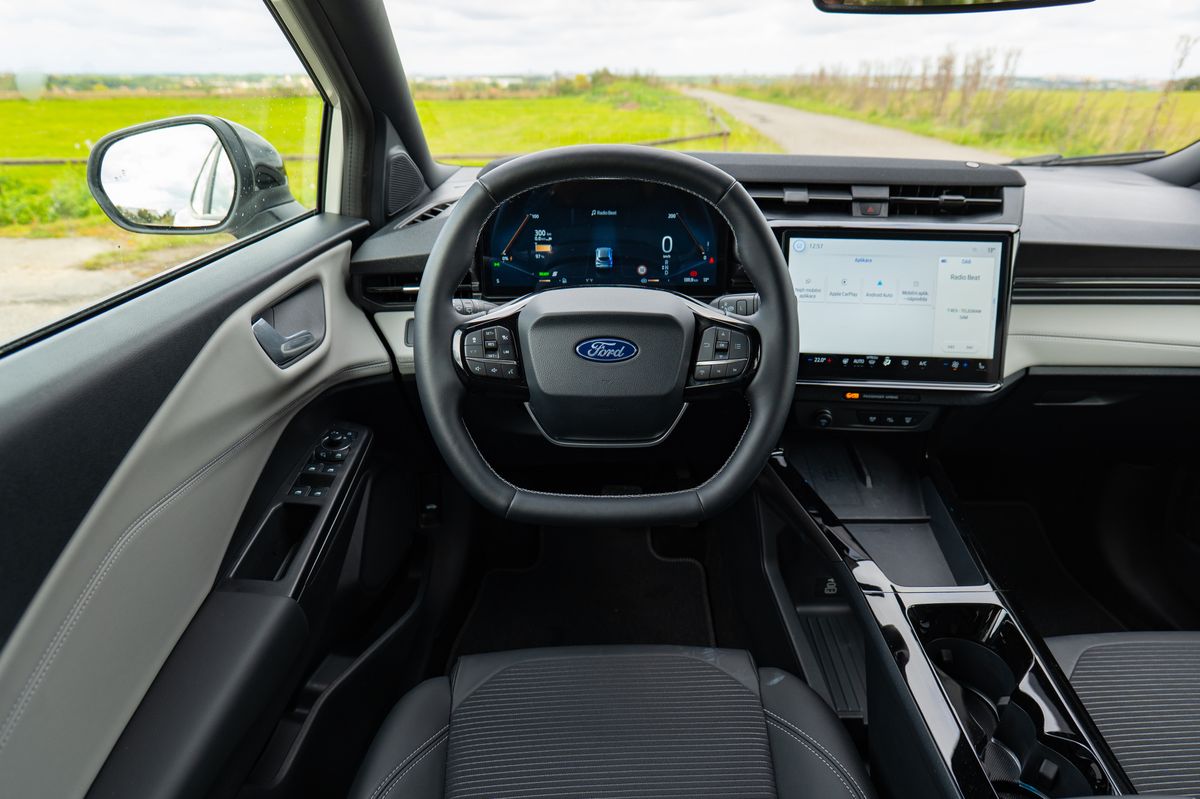 A to platí i v interiéru, který má zcela shodnou základní architekturu s dvojicí dvanáctipalcových displejů přístrojového štítu a dotykového infotainmentu (který je nečekaně přehledný a nabízí široké online služby a mobilní konektivitu). Liší se jen umístěním voliče převodovky – elektrická verze ho má pod volantem, což uvolnilo místo pro odkládací prostory na středovém tunelu a vytvořilo jeskyni v jejím spodním patře.