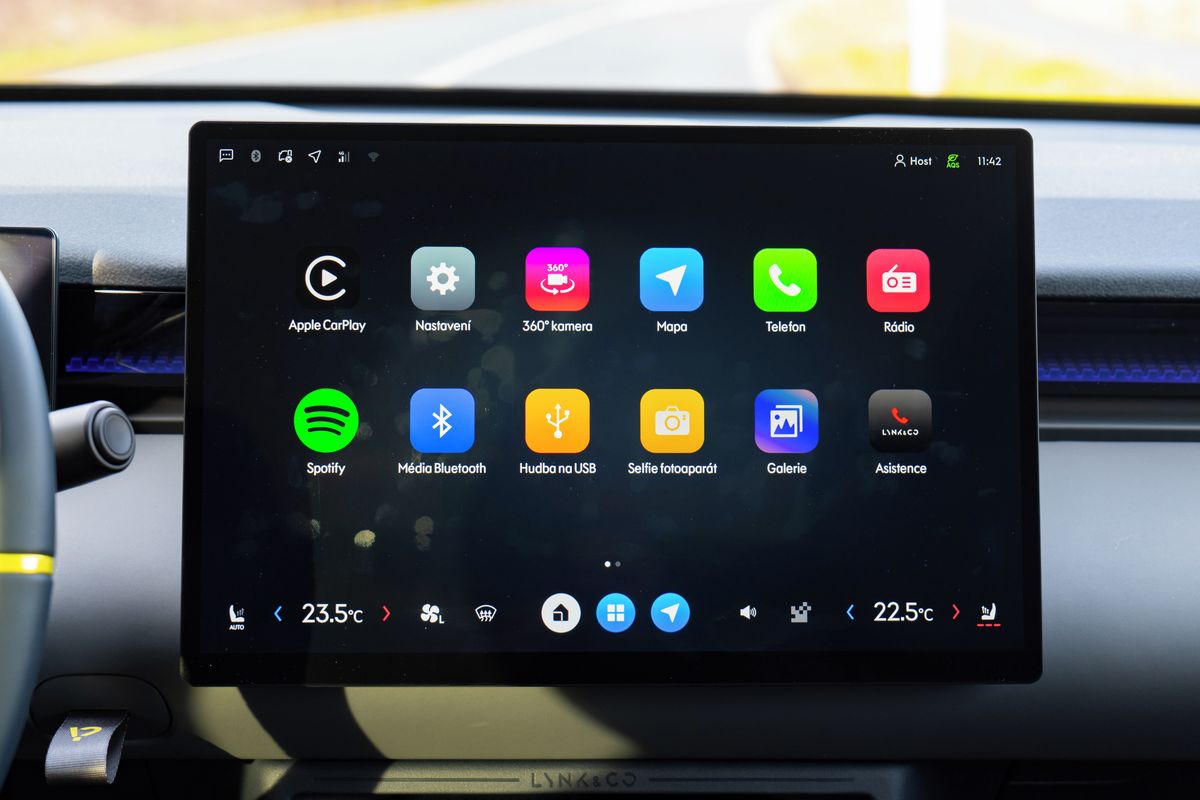 Jen je tu ta samá bolístka jako u většího Lynk & Co 08 – všechny ovládací prvky jsou na ploše infotainmentu, a i když je na spodní hraně šikovná lišta s ovládáním (některých funkcí) klimatizace, většinou se kvůli nešikovnému layoutu musíte ponořit do hlubin menu, podmenu a podpodmenu (aspoň že na rozdíl od EX30 tu zůstala tlačítka ovládání zrcátek). Což je zvlášť otravné u vypínání asistentů před každou jízdou (umí být trochu vlezlé), ale importér slibuje, že se na nápravě již pracuje.