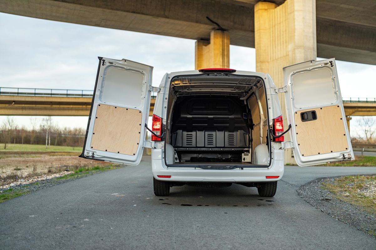Skříňový Mercedes-Benz eVito Kastenwagen L tak umí ušetřit peníze, řídí se snadno, je praktický, výbavově široce konfigurovatelný. Na plnou 90kWh baterku zvládne reálně kombinovaně ujet přes 300 km a ještě zbyde rezerva.