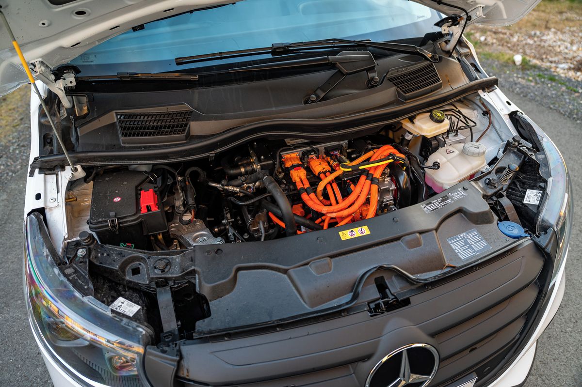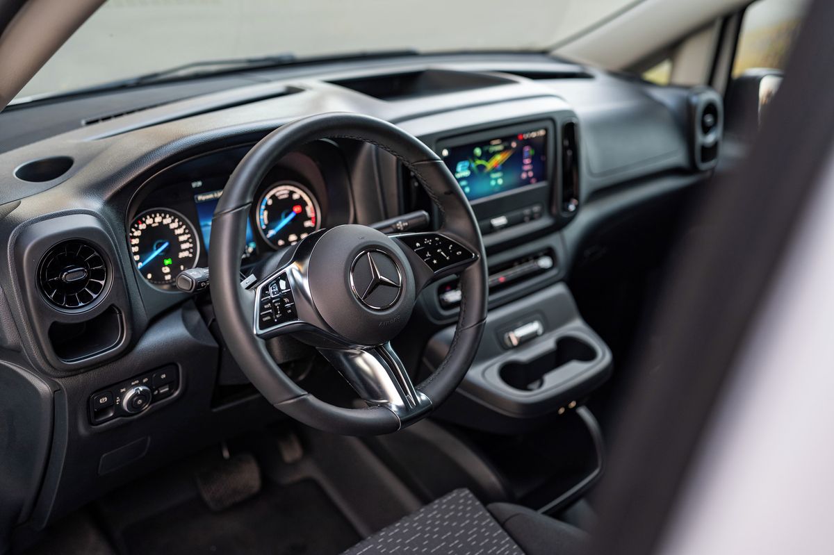 Neznamená to však, že byste si pracovní dodávku (německy kastenwagen, zkráceně kawa) dostupnou v délce L (5,14 m) nebo XL (5,37 m) nemohli individuálně přizpůsobit, právě naopak. Jde o mercedes, proto se k eVitu nabízí například praktické adaptivní diodové světlomety, což je technika známá spíše z osobních vozů.