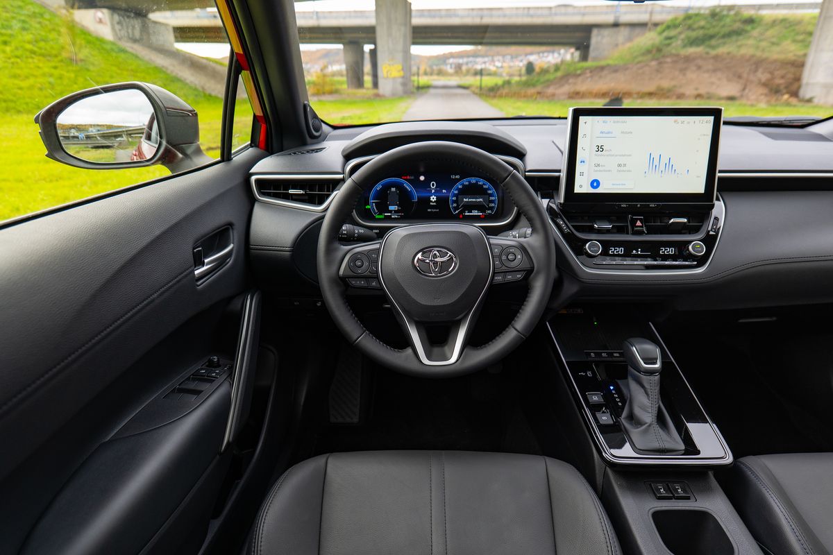 Tento jev bohužel vynikne o to víc, že v mírné zátěží Corolla Cross funguje úžasně tiše a kultivovaně, zvlášť když se pohybuje na elektřinu. A to umí docela často. Těží z toho pak i spotřeba, která se ve městě snadno vejde pod 5 l/100 km.