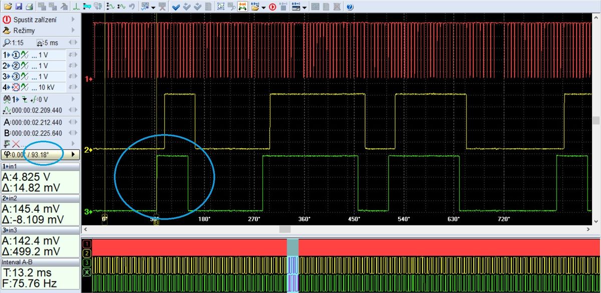 Co je tohle za čáry? To je výstup z měření časování rozvodů, podle kterého zkušený diagnostik hned pozná, jestli je problém v rozvodech, nebo právě v diskutovaném impulzním segmentu. Rozvody za 50 tisíc se tak měnit nemusí, ačkoli by to leckterý nepořádný servis hned napadlo (a problém by to nevyřešilo).