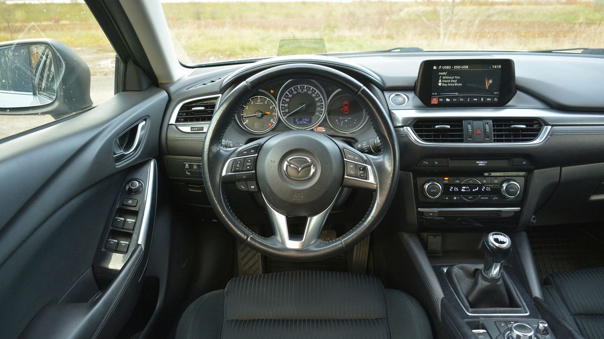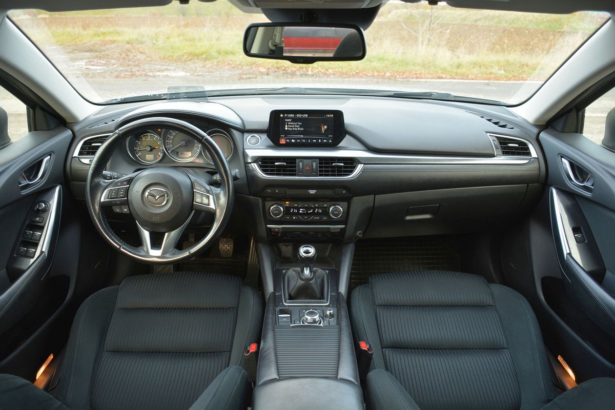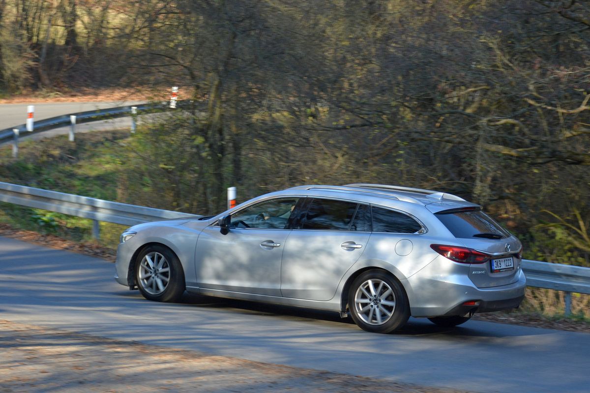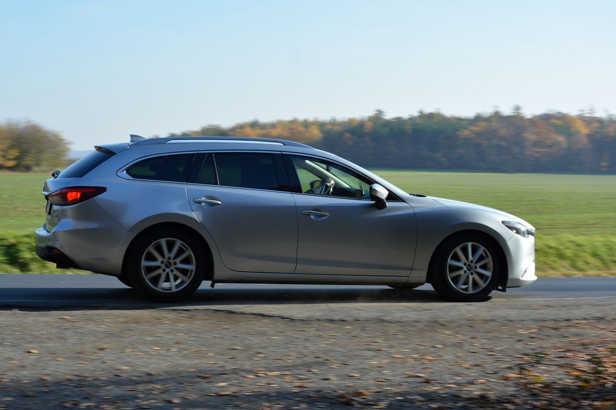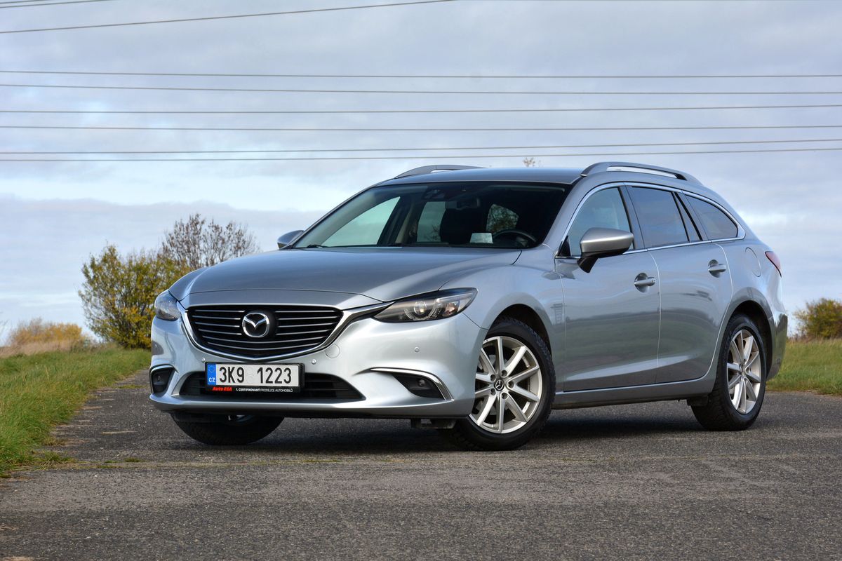 Na test jsme si v Auto ESA půjčili Mazdu 6 ve verzi kombi s atmosférickým benzinovým dvoulitrem o výkonu 121 kW, šestistupňovou manuální převodovkou a pohonem předních kol. Vůz vyrobený v roce 2016 je českého původu, se servisní historií a čerstvou STK. V době testu měl najeto 163 000 km a prodejce za něj chtěl rovných 300 000 Kč.