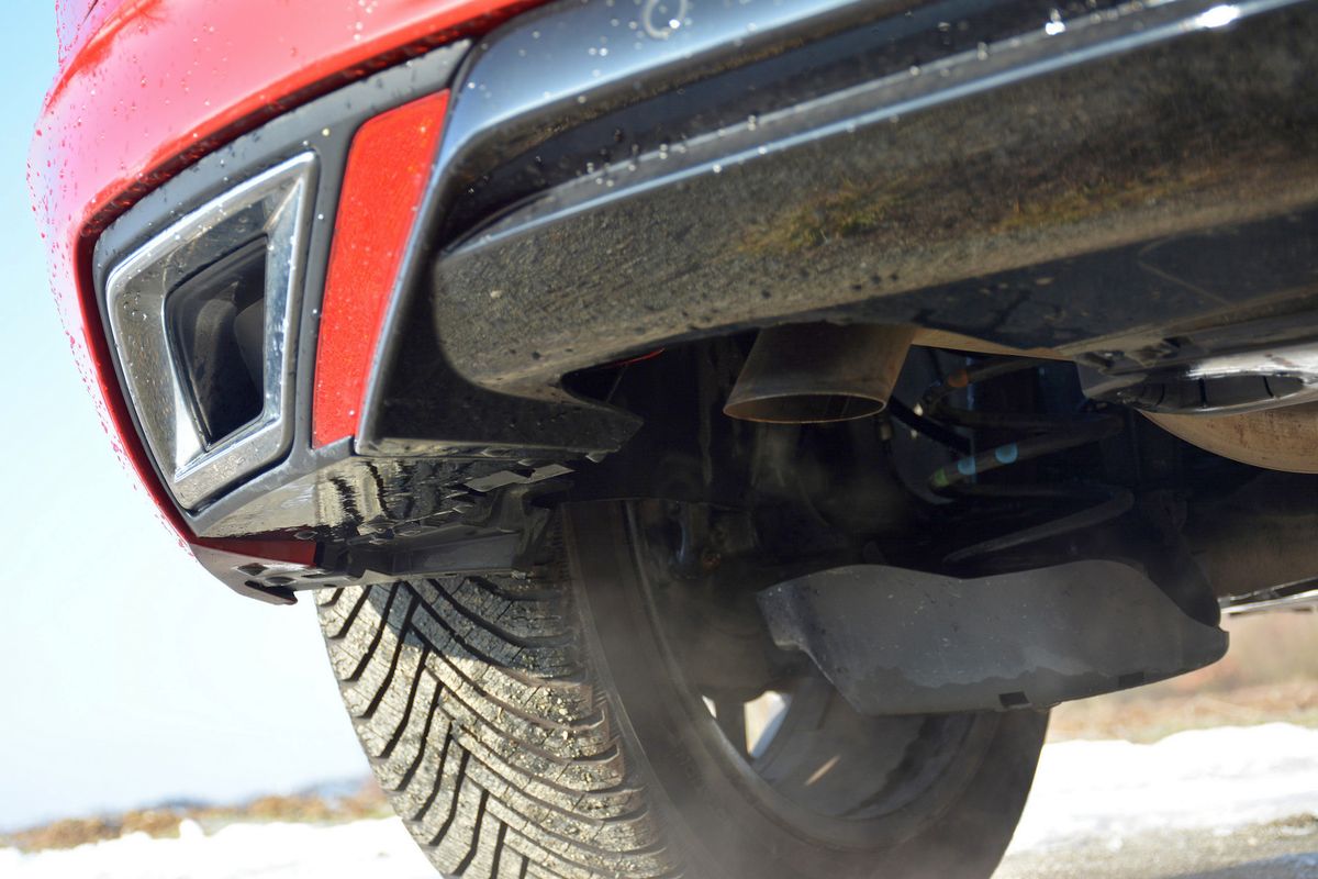 Falešné „koncovky“ výfuku (skutečná je ohnutá pod autem) jsou příšerně laciný detail, který hyzdí i mnoho opravdu prémiových aut věhlasných značek.