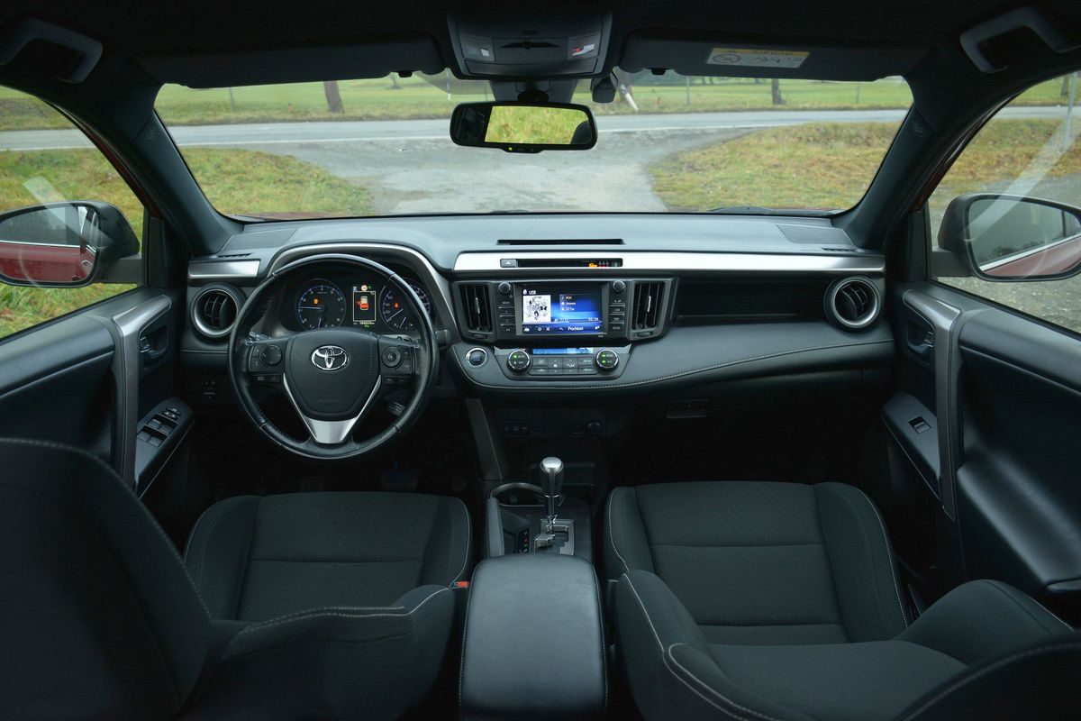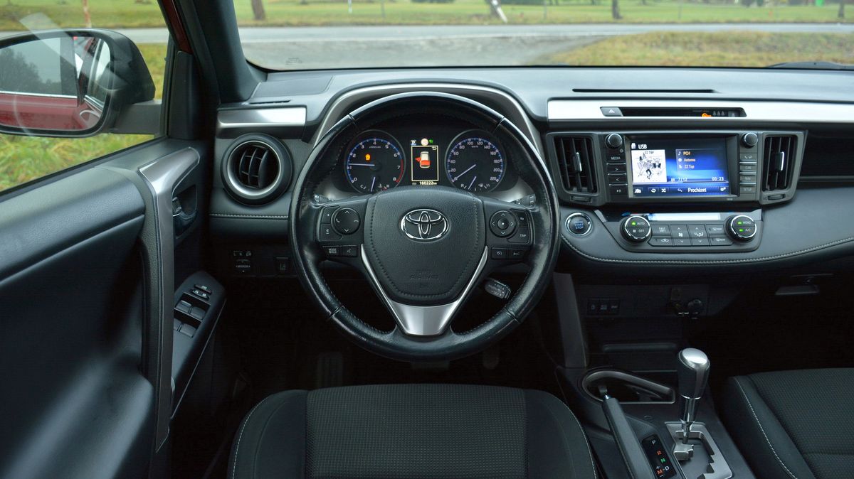 Na čtvrté generaci Toyoty RAV4 je vidět, že už trochu zastarává, ale pořád je to funkční auto, kterému nic zásadního nechybí. Určitě si nikdo nebude stěžovat na klasické tlačítkové a otočné ovladače, protože komicky zpomalený a zastaralý dotykový displej je tu vyhrazen pouze na ovládání rádia a ne třeba klimatizace (která zase japonsky fouká jen na nohy).