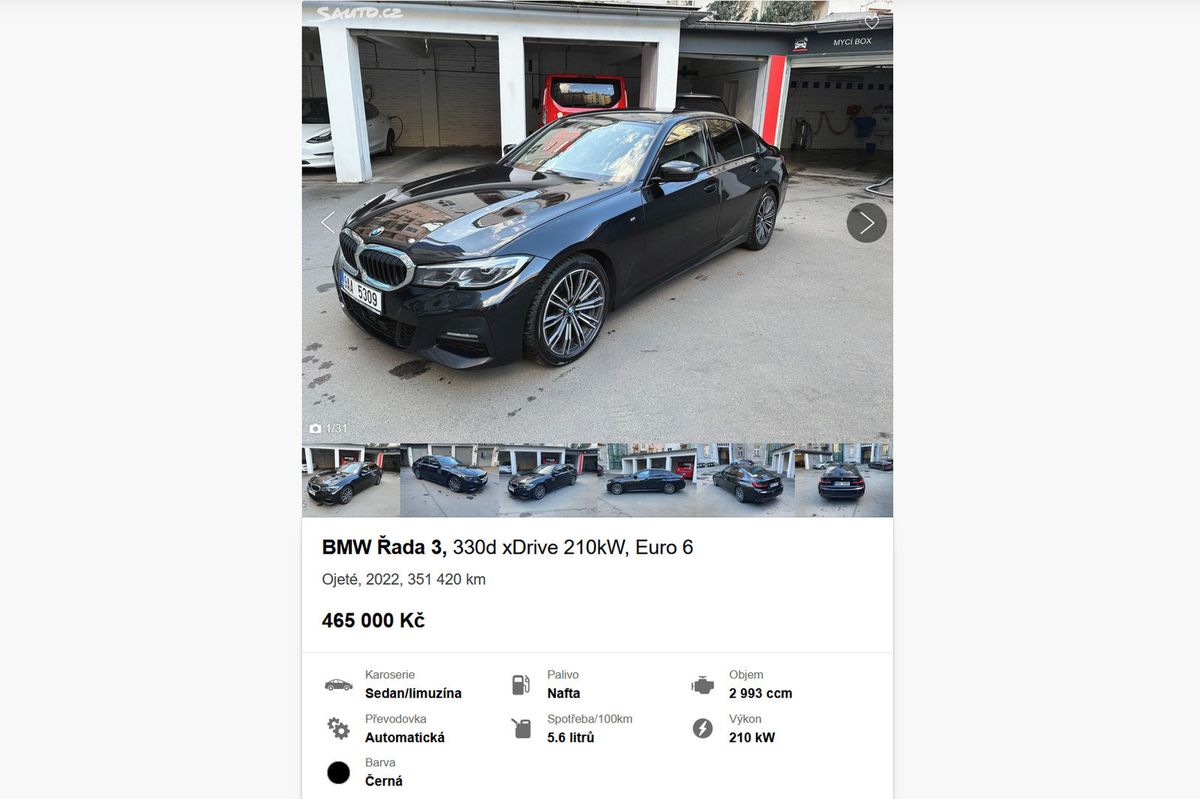 Tenhle trojkový bavorák se také rozhodně nenudil, v provozu je teprve od roku 2022 a už ujel přes 350 000 km, tedy v průměru přes 87 000 km ročně. Auto je českého původu a prodejce za něj chce 465 000 Kč (jen nevíme, jestli je to „odpočtovka“). Dle záznamů z STK prodělalo auto první technickou letos v lednu se stavem tachometru 346 147 km. Víc informací k autu prodejce nedal.