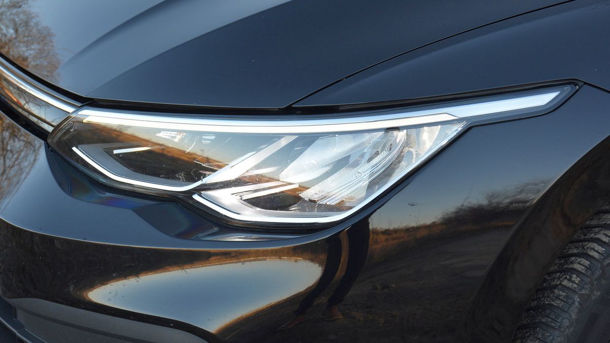 Golf VIII má vpředu standardně LED světla. Svítí moc pěkně a nezlobí. Opravy ale levné nejsou, celý světlomet stojí i v základní verzi skoro třicet tisíc.