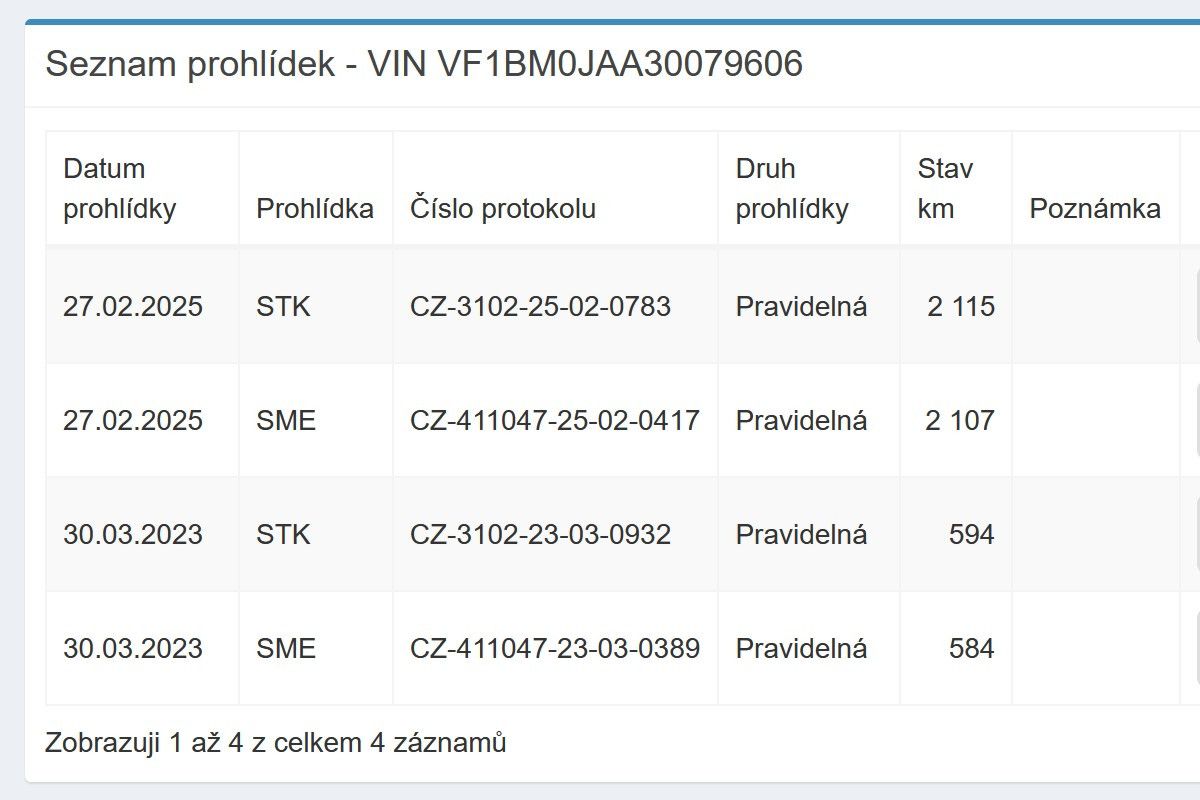 Vůz byl prý dlouhá léta v majetku českého zastoupení značky Renault a ještě v roce 2023 měl dle kontrol STK najeto jen necelých 600 km. Potvrzují to veřejně dostupná data.