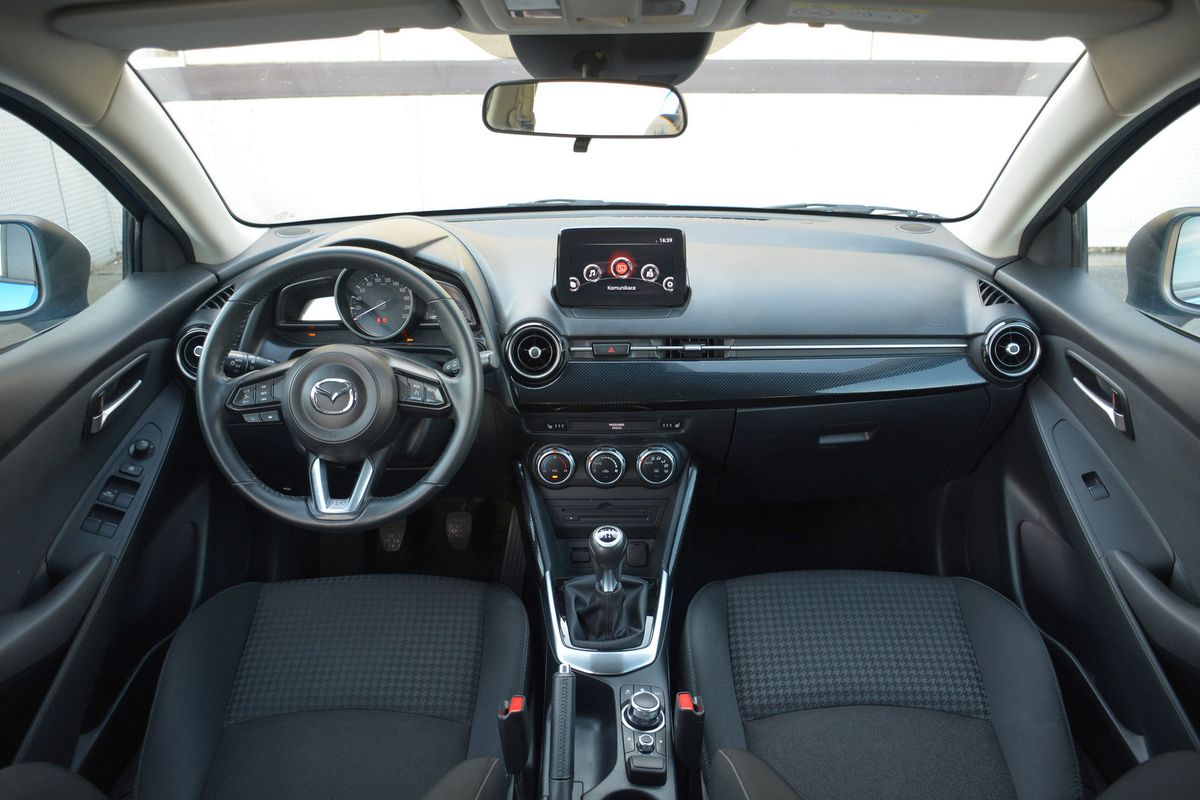 I přes nízkorozpočtovou povahu Mazdy2 a místy lacinější materiály je interiér příjemným místem k pobytu. Potěší zdařilá ergonomie, dobrá pozice za volantem a nevtíravé povinné asistenty, které můžete vypnout.