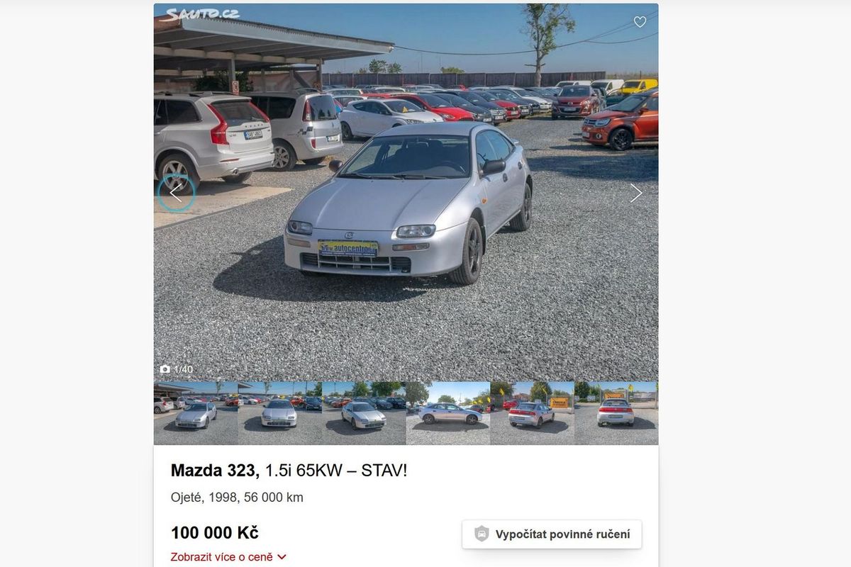 Nabízená Mazda 323 z roku 1998 dle evidence STK Ministerstva dopravy najela od roku 2008 jen 21 000 km a podle fotek vypadá opravdu mimořádně zachovale. Interiér je stále parádní, sedačky nejsou potrhané a palubní deska není popraskaná. Levná není, ale pro nadšence do vozů z Japonska jistě nebude problém si její nákup za 100 000 korun obhájit.